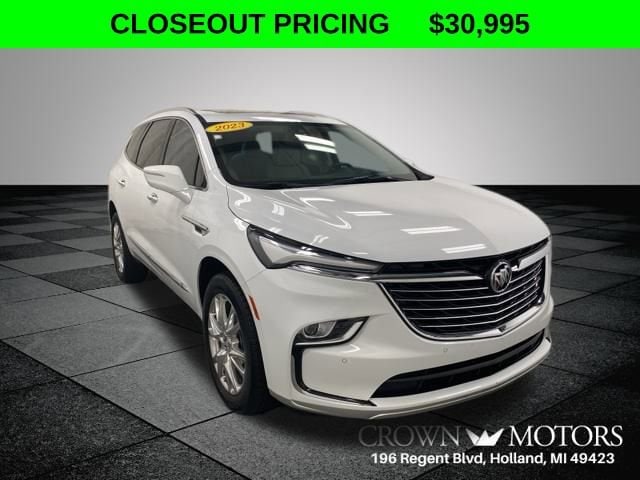 CARFAX One-Owner. Clean CARFAX. Certified. Summit White 2023 Buick Enclave Premium Group FWD 9-Speed Automatic 3.6L V6 SIDI VVT **ONE OWNER**, **GM CERTIFIED**, **ACCIDENT FREE**, **LOCAL TRADE IN**, Buick Certified Pre-Owned Certified, FWD, 10 Speakers, 18" Aluminum Wheels, 20" Polished Aluminum Wheels, 2nd Row Heated Outboard Seats, 3.49 Axle Ratio, 3rd row seats: split-bench, 4-Wheel Disc Brakes, 6-Way Power Front Passenger Seat Adjuster, 7-Passenger Seating, 8-Way Power Driver Seat Adjuster, ABS brakes, Air Conditioning, Alloy wheels, AM/FM radio: SiriusXM with 360L, Auto High-beam Headlights, Auto-dimming door mirrors, Auto-dimming Rear-View mirror, Automatic temperature control, Bose Performance-Enhanced 10-Speaker System, Brake assist, Bumpers: body-color, Cargo Package (LPO) (DISC), Cargo Security Shade (LPO), Compass, Delay-off headlights, Driver 4-Way Power Lumbar Seat Adjuster, Driver door bin, Driver vanity mirror, Dual front impact airbags, Dual front side impact airbags, Electronic Stability Control, Emergency communication system: OnStar and Buick connected services capable, Experience Buick Package, Exterior Parking Camera Rear, Four wheel independent suspension, Front & Rear Park Assist, Front anti-roll bar, Front Bucket Seats, Front Center Armrest, Front dual zone A/C, Front Passenger 4-Way Power Lumbar Seat Adjuster, Front Power Sliding Moonroof, Front reading lights, Fully automatic headlights, Garage door transmitter, Heads-Up Display, Heated door mirrors, Heated Driver & Front Passenger Seats, Heated front seats, Heated rear seats, Heated Steering Wheel, Heated steering wheel, Illuminated entry, Leather steering wheel, Low tire pressure warning, Memory Package, Memory seat, Navigation System, Not Equipped w/3rd Row 60/40 Power-Folding Seat, Occupant sensing airbag, Outside temperature display, Overhead airbag, Overhead console, Panic alarm, Passenger door bin, Passenger vanity mirror, Perforated Leather-Appointed Seat Trim, Power door mirrors, Power driver seat, Power Liftgate, Power passenger seat, Power steering, Power windows, Preferred Equipment Group 1SN, Premium audio system: Buick Infotainment System, Radio data system, Radio: Buick Infotainment Sys AM/FM Stereo w/Nav, Rear air conditioning, Rear anti-roll bar, Rear reading lights, Rear window defroster, Rear window wiper, Remote keyless entry, Roof rack: rails only, Security system, SiriusXM w/360L, Speed control, Speed-sensing steering, Spoiler, Steering wheel memory, Steering wheel mounted audio controls, Tachometer, Telescoping steering wheel, Tilt steering wheel, Traction control, Trip computer, Turn signal indicator mirrors, Variably intermittent wipers, Ventilated Driver & Front Passenger Seats, Ventilated front seats, Vertical Cargo Net (LPO), Voltmeter, Wireless Apple CarPlay/Wireless Android Auto, FWD.