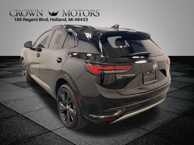 Clean CARFAX. Certified. Ebony Twilight Metallic 2023 Buick Envision Essence AWD 9-Speed Automatic 2.0L Turbocharged ** LOW MILES**, **GM CERTIFIED**, **ACCIDENT FREE**, Buick Certified Pre-Owned Certified, AWD, 3.47 Final Drive Axle Ratio, 4-Wheel Disc Brakes, 7 Speakers, 7-Speaker Audio System Feature w/Amplifier, 8-Way Power Driver Seat Adjuster, ABS brakes, Air Conditioning, Alloy wheels, AM/FM radio: SiriusXM, Apple CarPlay/Android Auto, Auto High-beam Headlights, Auto-dimming door mirrors, Auto-dimming Rear-View mirror, Automatic Emergency Braking, Automatic temperature control, Black Roof Rails, Body-Color Door Handles, Brake assist, Bumpers: body-color, Carpeted Front & Rear Floor Mats, Compass, Delay-off headlights, Driver door bin, Driver vanity mirror, Dual front impact airbags, Dual front side impact airbags, Electronic Stability Control, Emergency communication system: OnStar and Buick connected services capable, Envision Driver Confidence, Following Distance Indicator, Forward Collision Alert, Four wheel independent suspension, Front anti-roll bar, Front Bin Center Console USB Ports, Front Bucket Seats, Front Center Armrest, Front dual zone A/C, Front Passenger 8-Way Power Seat Adjuster, Front Pedestrian Braking, Front reading lights, Fully automatic headlights, Heated door mirrors, Heated Driver & Front Passenger Seats, Heated front seats, Heated steering wheel, Illuminated entry, IntelliBeam Headlamp Control w/Auto High Beam, Knee airbag, Lane Change Alert w/Side Blind Zone Alert, Lane Keep Assist w/Lane Departure Warning, Low tire pressure warning, Lower Trim/Wheel Arch Moldings, Memory seat, Occupant sensing airbag, Outside temperature display, Overhead airbag, Overhead console, Panic alarm, Passenger door bin, Passenger vanity mirror, Perforated Leather-Appointed Seat Trim, Power door mirrors, Power driver seat, Power Liftgate, Power Panoramic Tilt-Sliding Moonroof, Power passenger seat, Power steering, Power windows, Preferred Equipment Group 1SL, Premium audio system: Buick Infotainment System, Radio data system, Radio: Buick Infotainment System AM/FM Stereo, Rear anti-roll bar, Rear Cargo Compartment Cover, Rear Cross Traffic Alert, Rear reading lights, Rear seat center armrest, Rear window defroster, Rear window wiper, Remote keyless entry, Security system, SiriusXM Radio, Speed control, Split folding rear seat, Spoiler, Sport Alloy Pedals, Sport Touring Package, Steering wheel mounted audio controls, Telescoping steering wheel, Tilt steering wheel, Traction control, Trip computer, USB Charging-Only Ports, Variably intermittent wipers, Wheels: 18" Machined Aluminum w/Light Silver Met, Wheels: 20" Aluminum w/Dark Finish, Wireless Apple CarPlay/Wireless Android Auto, AWD.