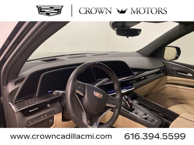 CARFAX One-Owner. Clean CARFAX. Certified. Black Raven 2023 Cadillac Escalade Premium Luxury AWD 10-Speed Automatic 6.2L V8 **ONE OWNER**, **GM CERTIFIED**, **ACCIDENT FREE**, **LOCAL TRADE IN**, Cadillac Certified Pre-Owned Certified, AWD, Parchment With Jet Black Accents Leather, Super Cruise, 16.9" Diagonal OLED Infotainment Screen, 19 Speakers, 2-Presets Memory For Driver Seat Adjuster, 3 Years of OnStar & Connected Services Plan, 3.23 Axle Ratio, 3rd row seats: split-bench, 4-Way Power Driver Lumbar Seat Adjuster, 4-Way Power Front Passenger Lumbar Seat Adjuster, 4-Wheel Disc Brakes, 8-Way Power Driver Seat Adjuster, 8-Way Power Front Passenger Seat Adjuster, ABS brakes, Adaptive Cruise Control, Air Conditioning, AKG Studio 19-Speaker Audio System, Alloy wheels, AM/FM radio: SiriusXM with 360L, Apple CarPlay/Android Auto, Audio memory, Auto High-beam Headlights, Auto tilt-away steering wheel, Auto-dimming door mirrors, Auto-dimming Rear-View mirror, Automatic Seat Belt Tightening, Automatic temperature control, Brake assist, Bumpers: body-color, Compass, Delay-off headlights, Door Lock & Latch Shields, Driver door bin, Driver vanity mirror, Dual front impact airbags, Dual front side impact airbags, Electronic Stability Control, Emergency communication system: OnStar and Cadillac connected services capable, Enhanced Automatic Emergency Braking, Enhanced Automatic Parking Assist, Exterior Parking Camera Rear, Four wheel independent suspension, Front anti-roll bar, Front Bucket Seats, Front Center Armrest w/Storage, Front dual zone A/C, Front reading lights, Fully automatic headlights, Garage door transmitter, Glass Breakage Sensor, HD Radio, Heads-Up Display, Heated & Ventilated Driver & Front Passenger Seats, Heated door mirrors, Heated Driver & Front Passenger Seats, Heated front seats, Heated rear seats, Heated steering wheel, Illuminated entry, Lane Change Alert w/Side Blind Zone Alert, Leather Seating Surfaces w/Mini-Chevron Perf Inserts, Low tire pressure warning, Mechanical Limited-Slip Differential, Memory seat, Navigation System, Not Equipped w/2nd Row Express-Up Window Control, Not Equipped w/Wheel Locks (LPO), Occupant sensing airbag, Outside temperature display, Overhead airbag, Overhead console, Panic alarm, Passenger door bin, Passenger vanity mirror, Power door mirrors, Power driver seat, Power Liftgate, Power moonroof, Power Panoramic Tilt-Sliding Sunroof, Power passenger seat, Power steering, Power windows, Preferred Equipment Group 1SB, Premium Smooth Ride Suspension, Radio data system, Radio: AM/FM w/Navigation, Rain sensing wipers, Rear air conditioning, Rear anti-roll bar, Rear Camera Mirror, Rear Camera Mirror Washer, Rear Cross Traffic Alert, Rear reading lights, Rear window defroster, Rear window wiper, Reconfigurable Full-Color Head-Up Display, Remote keyless entry, Reverse Automatic Braking, Running Board Assist Steps, Security system, SiriusXM w/360L, Speed control, Split folding rear seat, Spoiler, Steering wheel memory, Steering wheel mounted audio controls, Tachometer, Teen Driver, Telescoping steering wheel, Theft-Deterrent Alarm System, Tilt steering wheel, Traction control, Trip computer, Turn signal indicator mirrors, Variably intermittent wipers, Vehicle Inclination Sensor, Vehicle Interior Movement Sensor, Ventilated front seats, Voltmeter, Wheel Locks, Wheels: 22" 14-Spoke Alloy w/Polished Finish, Wireless Apple CarPlay/Wireless Android Auto, AWD, Parchment With Jet Black Accents Leather, Super Cruise.