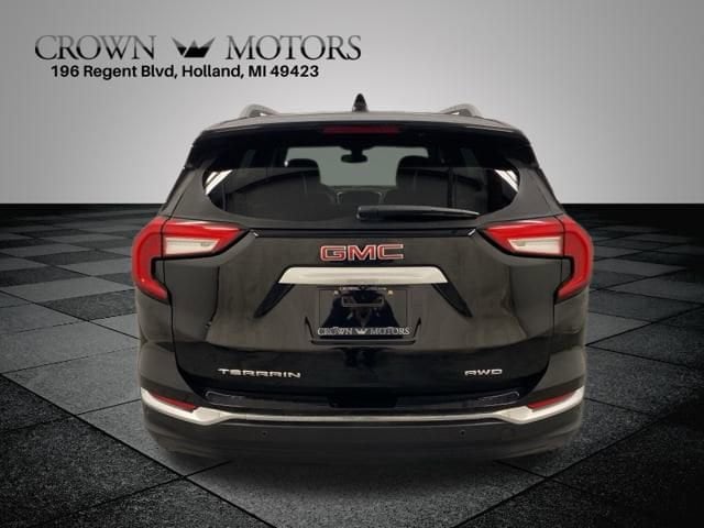 CARFAX One-Owner. Certified. Ebony Twilight Metallic 2024 GMC Terrain SLT AWD 9-Speed Automatic 1.5L DOHC **ONE OWNER**, **GM CERTIFIED**, GMC Certified Pre-Owned Certified, AWD, 2 USB Data Ports, 2 USB Data Ports w/SD Card Reader, 3.47 Final Drive Axle Ratio, 4-Wheel Disc Brakes, 6 Speakers, 6-Speaker Audio System Feature, 6-Way Power Front Passenger Seat, 8-Way Power Driver Seat Adjuster, ABS brakes, Adaptive Cruise Control, Air Conditioning, Alloy wheels, AM/FM radio: SiriusXM, Auto High-beam Headlights, Auto-dimming Rear-View mirror, Automatic temperature control, Bluetooth® For Phone, Brake assist, Bumpers: body-color, Cold Air Grille Shutter, Compass, Delay-off headlights, Driver & Front Passenger Heated Seats, Driver door bin, Driver vanity mirror, Dual front impact airbags, Dual front side impact airbags, Electronic Stability Control, Emergency communication system: OnStar and GMC connected services capable, Floor Liner Package (LPO), Four wheel independent suspension, Front & Rear All-Weather Floor Liners (LPO), Front anti-roll bar, Front Bucket Seats, Front Center Armrest, Front dual zone A/C, Front fog lights, Front Passenger 2-Way Power Lumbar, Front reading lights, Fully automatic headlights, Garage door transmitter, GMC Pro Safety Plus, Heated door mirrors, Heated front seats, Heated steering wheel, Illuminated entry, Infotainment Package II, Integrated Cargo Liner (LPO), Lane Change Alert w/Side Blind Zone Alert, Low tire pressure warning, Memory seat, Occupant sensing airbag, Outside temperature display, Overhead airbag, Overhead console, Panic alarm, Passenger door bin, Passenger vanity mirror, Perforated Leather-Appointed Seat Trim, Power door mirrors, Power Driver Lumbar Control, Power driver seat, Power Liftgate, Power passenger seat, Power steering, Power windows, Preferred Equipment Group 4SA, Premium 7-Speaker Bose Sound System w/Amplifier, Radio data system, Radio: GMC Infotainment Audio System w/8 Display, Radio: GMC Infotainment Audio System w/Navigation, Rear anti-roll bar, Rear Cross-Traffic Alert, Rear Park Assist, Rear seat center armrest, Rear window defroster, Rear window wiper, Remote keyless entry, Roof rack: rails only, Safety Alert Seat, Security system, SiriusXM, Speed control, Speed-sensing steering, Split folding rear seat, Spoiler, Steering wheel mounted audio controls, Tachometer, Telescoping steering wheel, Tilt steering wheel, Traction control, Trip computer, Turn signal indicator mirrors, Variably intermittent wipers, Wheels: 18 x 7 Silver Painted Aluminum, Wireless Apple CarPlay/Wireless Android Auto, AWD.Odometer is 5177 miles below market average! 23/28 City/Highway MPGGMC Certified Pre-Owned Details:* Powertrain Limited Warranty: 72 Month/100,000 Mile (whichever comes first) from original in-service date* Transferable Warranty* 172 Point Inspection* Limited Warranty: 12 Month/12,000 Mile (whichever comes first) from certified purchase date* Warranty Deductible: $0* Roadside Assistance* 24 months/24,000 miles (whichever comes first) Certified Pre-Owned Scheduled Maintenance Plan and 3 days/150 miles (whichever comes first) Vehicle Exchange Program. SiriusXM 3-month trial subscription* Vehicle HistoryCall us today for a test drive at 1-616-394-5599 or for a quick question TEXT 616-499-2225. Feel free to click on the Carfax. It is FREE! Customer Satisfaction Comes First Award-Winning Service Department Family-Owned and Community-Focused As a local business, we proudly support West Michigan schools, charities, and organizations, including Holland Public Schools, Zeeland Schools, Hope College, Evergreen Commons, and many more. No Gimmicks, No Hidden Fees Crown Motors provides straightforward, transparent pricing. Convenient Online Shopping Apply for financing, get a trade-in evaluation, and browse our inventory from home. Our online team is available to assist you every step of the way. Decades of Expe
