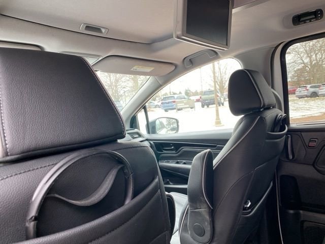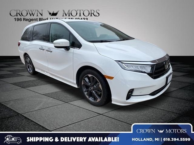 CARFAX One-Owner. Clean CARFAX. Certified. Platinum White Pearl 2023 Honda Odyssey Elite FWD 10-Speed Automatic 3.5L V6 SOHC i-VTEC 24V **ONE OWNER**, **HONDA CERTIFIED**, **ACCIDENT FREE**, HondaTrue Certified Certified, 11 Speakers, 3.61 Axle Ratio, 3rd row seats: split-bench, 4-Wheel Disc Brakes, A/V remote: CabinControl, ABS brakes, Adaptive Cruise Control: Adaptive Cruise Control (ACC) with Low-Speed Follow, Air Conditioning, Alloy wheels, AM/FM radio: SiriusXM, Anti-whiplash front head restraints, Apple CarPlay/Android Auto, Auto High-beam Headlights, Auto-dimming door mirrors, Auto-dimming Rear-View mirror, Automatic temperature control, Blind Spot Information (BSI) System warning, Brake assist, Bumpers: body-color, CD player, Compass, Delay-off headlights, Driver door bin, Driver vanity mirror, Driver's Seat Mounted Armrest, Dual front impact airbags, Dual front side impact airbags, DVD-Audio, Electronic Stability Control, Emergency communication system: HondaLink, Exterior Parking Camera Rear, Four wheel independent suspension, Front anti-roll bar, Front Bucket Seats, Front dual zone A/C, Front fog lights, Front reading lights, Fully automatic headlights, Garage door transmitter: HomeLink, Headphones, Heated door mirrors, Heated Front Bucket Seats, Heated front seats, Heated steering wheel, Illuminated entry, Knee airbag, Lane departure: Lane Keeping Assist System (LKAS) active, Leather Seat Trim, Leather steering wheel, Low tire pressure warning, Memory seat, Navigation system: Honda Satellite-Linked Navigation System, Occupant sensing airbag, Outside temperature display, Overhead airbag, Overhead console, Panic alarm, Passenger door bin, Passenger seat mounted armrest, Passenger vanity mirror, Power door mirrors, Power driver seat, Power Liftgate, Power moonroof, Power passenger seat, Power steering, Power windows, Radio data system, Radio: 550-Watt AM/FM/HD Premium Audio System, Rain sensing wipers, Rear air conditioning, Rear anti-roll bar, Rear audio controls, Rear reading lights, Rear seat center armrest, Rear window defroster, Rear window wiper, Reclining 3rd row seat, Remote keyless entry, Security system, Speed control, Speed-sensing steering, Speed-Sensitive Wipers, Split folding rear seat, Spoiler, Steering wheel mounted audio controls, Tachometer, Telescoping steering wheel, Tilt steering wheel, Traction control, Trip computer, Turn signal indicator mirrors, Variably intermittent wipers, Wheels: 19" Unique Machine-Finished Alloy.