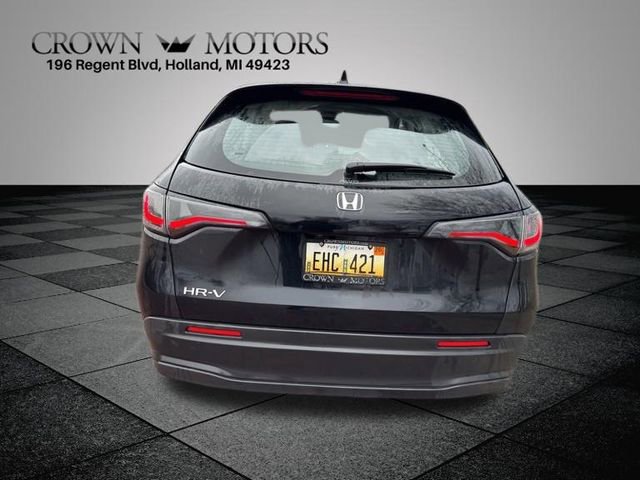 CARFAX One-Owner. Clean CARFAX. Certified. Black 2024 Honda HR-V LX AWD CVT 2.0L I4 DOHC 16V i-VTEC **ONE OWNER**, ** LOW MILES**, **HONDA CERTIFIED**, **ACCIDENT FREE**, **LOCAL TRADE IN**, 4 Speakers, 4-Wheel Disc Brakes, 5.436 Axle Ratio, ABS brakes, Adaptive Cruise Control: Adaptive Cruise Control (ACC) with Low-Speed Follow, Air Conditioning, Alloy wheels, AM/FM radio, Apple CarPlay/Android Auto, Auto High-beam Headlights, Automatic temperature control, Brake assist, Bumpers: body-color, Cloth Seat Trim, Delay-off headlights, Driver door bin, Driver vanity mirror, Dual front impact airbags, Dual front side impact airbags, Electronic Stability Control, Emergency communication system: HondaLink, Exterior Parking Camera Rear, Four wheel independent suspension, Front anti-roll bar, Front Bucket Seats, Front Center Armrest, Front reading lights, Fully automatic headlights, Illuminated entry, Knee airbag, Low tire pressure warning, Occupant sensing airbag, Outside temperature display, Overhead airbag, Panic alarm, Passenger door bin, Passenger vanity mirror, Power door mirrors, Power steering, Power windows, Radio data system, Radio: 180-Watt Audio System w/4 Speakers, Rear anti-roll bar, Rear reading lights, Rear side impact airbag, Rear window defroster, Rear window wiper, Remote keyless entry, Security system, Speed control, Speed-sensing steering, Split folding rear seat, Spoiler, Steering wheel mounted audio controls, Tachometer, Telescoping steering wheel, Tilt steering wheel, Traction control, Trip computer, Variably intermittent wipers, Wheels: 17" Silver Painted Alloy.