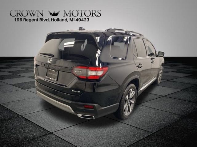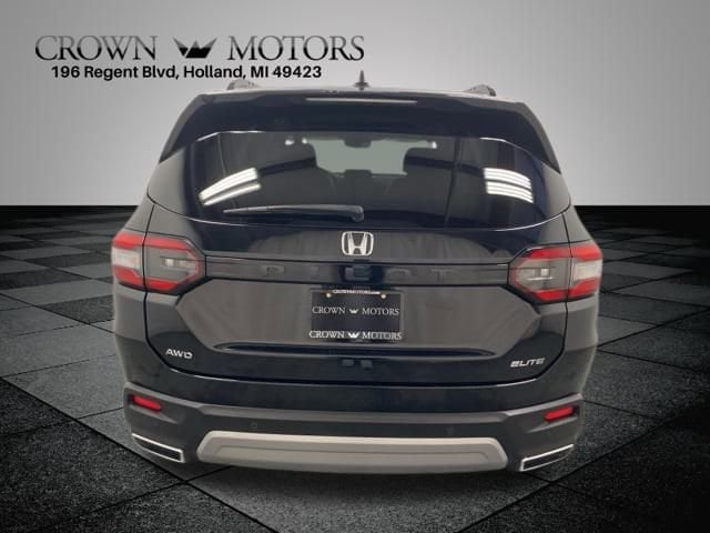 CARFAX One-Owner. Clean CARFAX. Certified. Crystal Black Pearl 2024 Honda Pilot Elite AWD 10-Speed Automatic 3.5L V6 DOHC 24V **ONE OWNER**, **HONDA CERTIFIED**, **ACCIDENT FREE**, HondaTrue Certified Certified, AWD, 12 Speakers, 3rd row seats: split-bench, 4-Wheel Disc Brakes, ABS brakes, Adaptive Cruise Control: Adaptive Cruise Control (ACC) with Low-Speed Follow, Air Conditioning, Alloy wheels, AM/FM radio: SiriusXM, Apple CarPlay/Android Auto, Auto High-beam Headlights, Auto-dimming door mirrors, Auto-dimming Rear-View mirror, Automatic temperature control, Axle Ratio: 4.167, Blind Spot Information (BSI) System warning, Brake assist, Bumpers: body-color, Compass, Delay-off headlights, Driver door bin, Driver vanity mirror, Dual front impact airbags, Dual front side impact airbags, Electronic Stability Control, Emergency communication system: HondaLink, Exterior Parking Camera Rear, Four wheel independent suspension, Front anti-roll bar, Front Bucket Seats, Front Center Armrest, Front dual zone A/C, Front fog lights, Front reading lights, Fully automatic headlights, Garage door transmitter: HomeLink, Heads-Up Display, Heated & Ventilated Front Bucket Seats, Heated door mirrors, Heated front seats, Heated rear seats, Heated steering wheel, Illuminated entry, Knee airbag, Lane departure: Lane Keeping Assist System (LKAS) active, Low tire pressure warning, Memory seat, Navigation system: Honda Satellite-Linked Navigation System, Occupant sensing airbag, Outside temperature display, Overhead airbag, Overhead console, Panic alarm, Passenger door bin, Passenger vanity mirror, Perforated Leather Seat Trim, Power door mirrors, Power driver seat, Power Liftgate, Power moonroof, Power passenger seat, Power steering, Power windows, Radio data system, Radio: BOSE Premium Sound System, Rain sensing wipers, Rear air conditioning, Rear anti-roll bar, Rear reading lights, Rear seat center armrest, Rear window defroster, Rear window wiper, Reclining 3rd row seat, Remote keyless entry, Security system, Speed control, Speed-sensing steering, Speed-Sensitive Wipers, Split folding rear seat, Spoiler, Steering wheel mounted audio controls, Tachometer, Telescoping steering wheel, Tilt steering wheel, Traction control, Trip computer, Turn signal indicator mirrors, Variably intermittent wipers, Ventilated front seats, Wheels: 20" Shark Gray Machine Face w/Blk Lug Nuts, AWD.