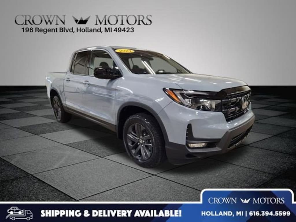 CARFAX One-Owner. Clean CARFAX. Certified. Sonic Gray Pearl 2024 Honda Ridgeline Sport AWD 9-Speed Automatic 3.5L V6 SOHC i-VTEC 24V **ONE OWNER**, ** LOW MILES**, **HONDA CERTIFIED**, **ACCIDENT FREE**, HondaTrue Certified Certified, Black Cloth, 4-Wheel Disc Brakes, 4.33 Axle Ratio, 7 Speakers, ABS brakes, Air Conditioning, Alloy wheels, AM/FM radio, Automatic temperature control, Blind Spot Information (BSI) System warning, Bluetooth® Hands-Free Link, Brake assist, Bumpers: body-color, Cloth Seat Trim, Delay-off headlights, Driver door bin, Driver vanity mirror, Driver's Seat Mounted Armrest, Dual front impact airbags, Dual front side impact airbags, Electronic Stability Control, Emergency communication system: HondaLink Assist, Exterior Parking Camera Rear, Four wheel independent suspension, Front anti-roll bar, Front Bucket Seats, Front dual zone A/C, Front fog lights, Fully automatic headlights, Illuminated entry, Low tire pressure warning, Occupant sensing airbag, Outside temperature display, Overhead airbag, Overhead console, Panic alarm, Passenger door bin, Passenger seat mounted armrest, Passenger vanity mirror, Power door mirrors, Power steering, Power windows, Radio data system, Radio: 215-Watt Audio System w/7 Speakers, Rear air conditioning, Rear anti-roll bar, Rear reading lights, Rear seat center armrest, Rear step bumper, Rear window defroster, Remote keyless entry, Security system, Speed control, Speed-sensing steering, Split folding rear seat, Steering wheel mounted audio controls, Tachometer, Telescoping steering wheel, Tilt steering wheel, Traction control, Trip computer, Variably intermittent wipers, Wheels: 18" Shark Gray Alloy, Wireless Apple CarPlay/Wireless Android Auto, Black Cloth.