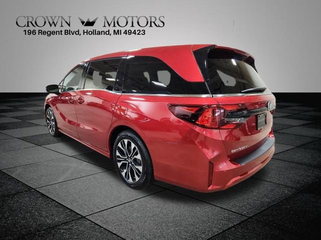 Clean CARFAX. Certified. Radiant Red Metallic II 2025 Honda Odyssey Elite FWD 10-Speed Automatic 3.5L V6 SOHC i-VTEC 24V ** LOW MILES**, **HONDA CERTIFIED**, **ACCIDENT FREE**, HondaTrue Certified Certified, 11 Speakers, 3rd row seats: split-bench, 4-Wheel Disc Brakes, ABS brakes, Adaptive Cruise Control: Adaptive Cruise Control (ACC) with Low-Speed Follow, Air Conditioning, Alloy wheels, AM/FM radio: SiriusXM, Anti-whiplash front head restraints, Apple CarPlay/Android Auto, Auto High-beam Headlights, Auto-dimming door mirrors, Auto-dimming Rear-View mirror, Automatic temperature control, Blind Spot Information (BSI) System warning, Brake assist, Bumpers: body-color, Compass, Delay-off headlights, Driver door bin, Driver vanity mirror, Driver's Seat Mounted Armrest, Dual front impact airbags, Dual front side impact airbags, Electronic Stability Control, Emergency communication system: HondaLink, Exterior Parking Camera Rear, Four wheel independent suspension, Front anti-roll bar, Front Bucket Seats, Front dual zone A/C, Front fog lights, Front reading lights, Fully automatic headlights, Garage door transmitter: HomeLink, Heated & Ventilated Front Bucket Seats, Heated door mirrors, Heated front seats, Heated steering wheel, Illuminated entry, Knee airbag, Lane departure: Lane Keeping Assist System (LKAS) active, Leather steering wheel, Low tire pressure warning, Memory seat, Navigation system: Honda Satellite-Linked Navigation System, Occupant sensing airbag, Outside temperature display, Overhead airbag, Overhead console, Panic alarm, Passenger door bin, Passenger seat mounted armrest, Passenger vanity mirror, Perforated Leather Trimmed Seats w/Piping, Power door mirrors, Power driver seat, Power Liftgate, Power moonroof, Power passenger seat, Power steering, Power windows, Radio data system, Radio: 500-Watt AM/FM/HD Premium Audio System, Rain sensing wipers, Rear air conditioning, Rear anti-roll bar, Rear audio controls, Rear reading lights, Rear seat center armrest, Rear window defroster, Rear window wiper, Reclining 3rd row seat, Remote keyless entry, Security system, Speed control, Speed-sensing steering, Speed-Sensitive Wipers, Split folding rear seat, Spoiler, Steering wheel mounted audio controls, Tachometer, Telescoping steering wheel, Tilt steering wheel, Traction control, Trip computer, Turn signal indicator mirrors, Variably intermittent wipers, Ventilated front seats, Wheels: 19" Machine-Finished Alloy.