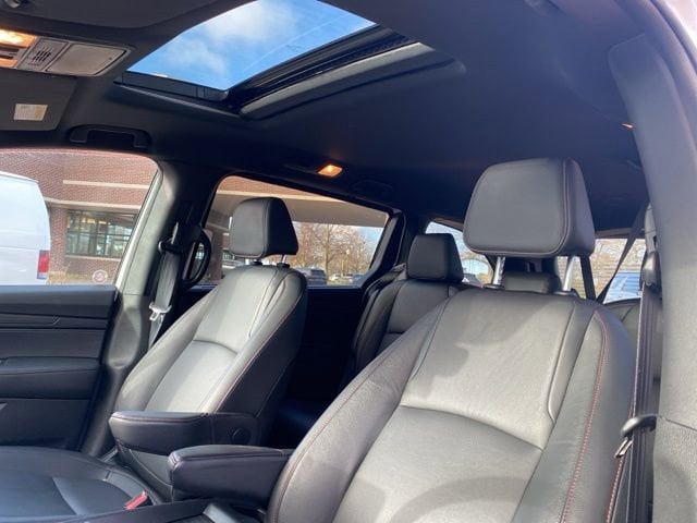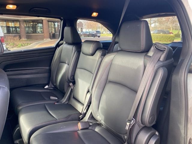 CARFAX One-Owner. Clean CARFAX. Certified. Platinum White Pearl 2025 Honda Odyssey Sport-L FWD 10-Speed Automatic 3.5L V6 SOHC i-VTEC 24V **ONE OWNER**, **ACCIDENT FREE**, HondaTrue Certified Certified, 3rd row seats: split-bench, 4-Wheel Disc Brakes, 7 Speakers, ABS brakes, Adaptive Cruise Control: Adaptive Cruise Control (ACC) with Low-Speed Follow, Air Conditioning, Alloy wheels, AM/FM radio: SiriusXM, Anti-whiplash front head restraints, Apple CarPlay/Android Auto, Auto High-beam Headlights, Auto-dimming Rear-View mirror, Automatic temperature control, Blind Spot Information (BSI) System warning, Brake assist, Bumpers: body-color, Delay-off headlights, Driver door bin, Driver vanity mirror, Driver's Seat Mounted Armrest, Dual front impact airbags, Dual front side impact airbags, Electronic Stability Control, Exterior Parking Camera Rear, Four wheel independent suspension, Front anti-roll bar, Front Bucket Seats, Front dual zone A/C, Front fog lights, Front reading lights, Fully automatic headlights, Garage door transmitter: HomeLink, Heated door mirrors, Heated Front Bucket Seats, Heated front seats, Illuminated entry, Knee airbag, Lane departure: Lane Keeping Assist System (LKAS) active, Leather steering wheel, Leather Trimmed Seats, Low tire pressure warning, Memory seat, Occupant sensing airbag, Outside temperature display, Overhead airbag, Overhead console, Panic alarm, Passenger door bin, Passenger seat mounted armrest, Passenger vanity mirror, Power door mirrors, Power driver seat, Power Liftgate, Power moonroof, Power passenger seat, Power steering, Power windows, Radio data system, Radio: 160-Watt AM/FM/HD/SiriusXM Audio System, Rear air conditioning, Rear anti-roll bar, Rear reading lights, Rear seat center armrest, Rear window defroster, Rear window wiper, Reclining 3rd row seat, Remote keyless entry, Security system, Speed control, Speed-sensing steering, Speed-Sensitive Wipers, Split folding rear seat, Spoiler, Steering wheel mounted audio controls, Tachometer, Telescoping steering wheel, Tilt steering wheel, Traction control, Trip computer, Turn signal indicator mirrors, Variably intermittent wipers, Wheels: 19" Gloss Black Alloy.
