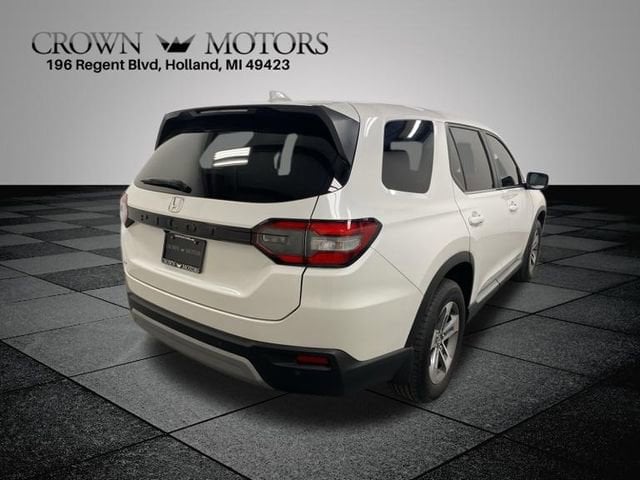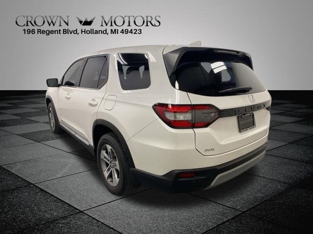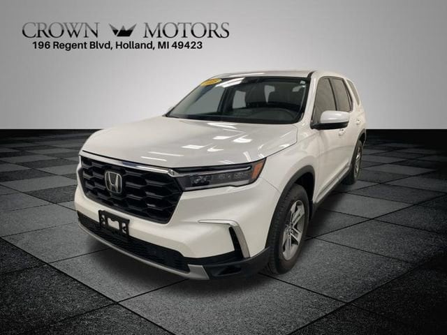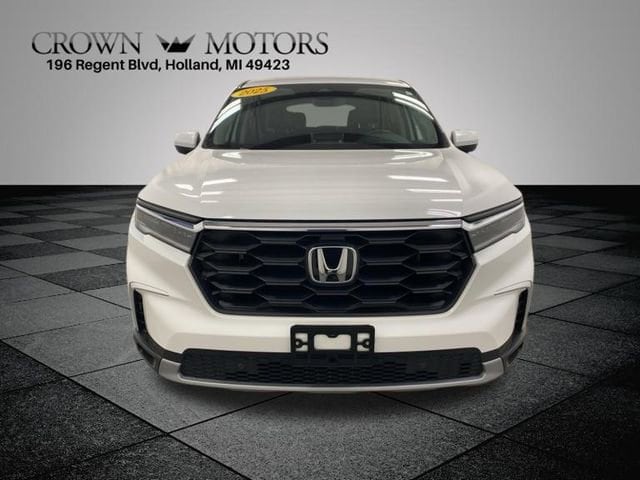 CARFAX One-Owner. Clean CARFAX. Certified. Platinum White Pearl 2025 Honda Pilot EX-L AWD 10-Speed Automatic 3.5L V6 DOHC 24V **ONE OWNER**, **HONDA CERTIFIED**, **ACCIDENT FREE**, HondaTrue Certified Certified, AWD, 3rd row seats: split-bench, 4-Wheel Disc Brakes, 4.167 Axle Ratio, 9 Speakers, ABS brakes, Adaptive Cruise Control: Adaptive Cruise Control (ACC) with Low-Speed Follow, Air Conditioning, Alloy wheels, AM/FM radio: SiriusXM, Apple CarPlay/Android Auto, Auto High-beam Headlights, Auto-dimming Rear-View mirror, Automatic temperature control, Blind Spot Information (BSI) System warning, Brake assist, Bumpers: body-color, Delay-off headlights, Driver door bin, Driver vanity mirror, Dual front impact airbags, Dual front side impact airbags, Electronic Stability Control, Emergency communication system: HondaLink Assist, Exterior Parking Camera Rear, Four wheel independent suspension, Front anti-roll bar, Front Bucket Seats, Front Center Armrest, Front dual zone A/C, Front fog lights, Front reading lights, Fully automatic headlights, Garage door transmitter: HomeLink, Heated door mirrors, Heated Front Bucket Seats, Heated front seats, Illuminated entry, Knee airbag, Lane departure: Lane Keeping Assist System (LKAS) active, Leather Seat Trim, Low tire pressure warning, Memory seat, Occupant sensing airbag, Outside temperature display, Overhead airbag, Overhead console, Panic alarm, Passenger door bin, Passenger vanity mirror, Power door mirrors, Power driver seat, Power Liftgate, Power passenger seat, Power steering, Power windows, Radio data system, Radio: 245-Watt Audio System, Rear air conditioning, Rear anti-roll bar, Rear reading lights, Rear seat center armrest, Rear window defroster, Rear window wiper, Reclining 3rd row seat, Remote keyless entry, Security system, SiriusXM, Speed control, Speed-sensing steering, Speed-Sensitive Wipers, Split folding rear seat, Spoiler, Steering wheel mounted audio controls, Tachometer, Telescoping steering wheel, Tilt steering wheel, Traction control, Trip computer, Turn signal indicator mirrors, Variably intermittent wipers, Wheels: 18" Pewter Gray Machined Face, AWD.