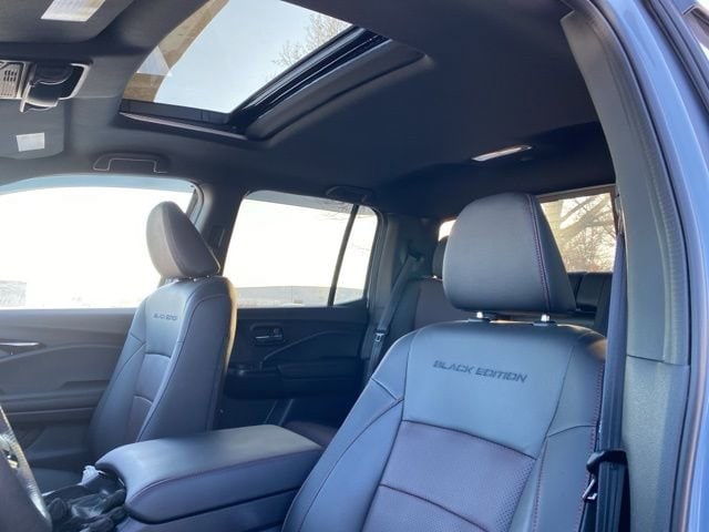 CARFAX One-Owner. Clean CARFAX. Certified. Sonic Gray Pearl 2025 Honda Ridgeline Black Edition AWD 9-Speed Automatic 3.5L V6 SOHC i-VTEC 24V **ONE OWNER**, ** LOW MILES**, **HONDA CERTIFIED**, **ACCIDENT FREE**, Black Leather, 4-Wheel Disc Brakes, 4.33 Axle Ratio, 8 Speakers, ABS brakes, Air Conditioning, Alloy wheels, AM/FM radio: SiriusXM, Auto High-beam Headlights, Auto-dimming Rear-View mirror, Automatic temperature control, Blind Spot Information (BSI) System warning, Bluetooth® Hands-Free Link, Brake assist, Bumpers: body-color, Compass, Delay-off headlights, Driver door bin, Driver vanity mirror, Driver's Seat Mounted Armrest, Dual front impact airbags, Dual front side impact airbags, Electronic Stability Control, Emergency communication system: HondaLink Assist, Exterior Parking Camera Rear, Four wheel independent suspension, Front anti-roll bar, Front Bucket Seats, Front dual zone A/C, Front fog lights, Front reading lights, Fully automatic headlights, Garage door transmitter: HomeLink, Heated & Ventilated Front Bucket Seats, Heated door mirrors, Heated front seats, Heated rear seats, Heated steering wheel, Honda Satellite-Linked Navigation System, Illuminated entry, Leather Seat Trim, Leather steering wheel, Low tire pressure warning, Memory seat, Navigation system: Honda Satellite-Linked Navigation System, Occupant sensing airbag, Outside temperature display, Overhead airbag, Overhead console, Panic alarm, Passenger door bin, Passenger seat mounted armrest, Passenger vanity mirror, Power door mirrors, Power driver seat, Power moonroof, Power passenger seat, Power steering, Power windows, Radio data system, Radio: 540-Watt Premium Audio System w/8 Speakers, Rear air conditioning, Rear anti-roll bar, Rear reading lights, Rear seat center armrest, Rear step bumper, Rear window defroster, Remote keyless entry, Security system, SiriusXM, Speed control, Speed-sensing steering, Split folding rear seat, Steering wheel mounted audio controls, Tachometer, Telescoping steering wheel, Tilt steering wheel, Traction control, Trip computer, Turn signal indicator mirrors, Variably intermittent wipers, Ventilated front seats, Wheels: 18" Berlina Black Alloy, Black Leather.