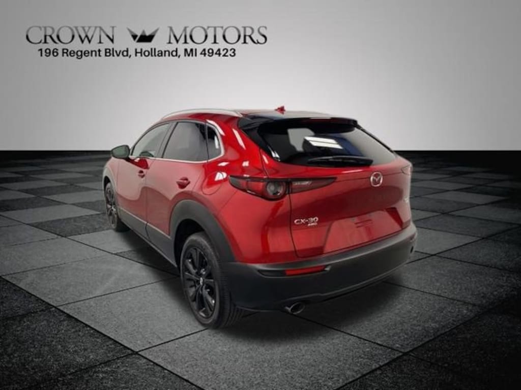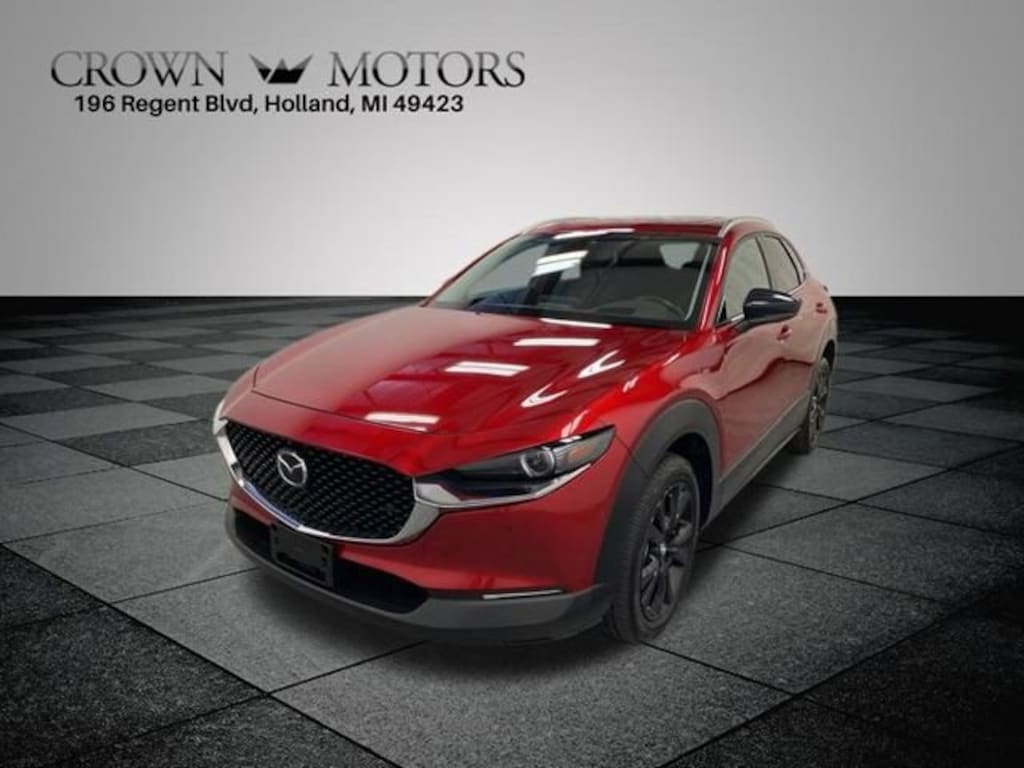 CARFAX One-Owner. Clean CARFAX. Certified. Soul Red Crystal Metallic 2022 Mazda CX-30 2.5 Turbo Premium Plus Package w/Premium Plus Package AWD 6-Speed Automatic 2.5L I4 **ONE OWNER**, ** LOW MILES**, **MAZDA CERTIFIED**, **ACCIDENT FREE**, Mazda Certified Pre-Owned Certified, AWD, 12 Speakers, 3.841 Axle Ratio, 4-Wheel Disc Brakes, ABS brakes, Air Conditioning, Alloy wheels, AM/FM radio: SiriusXM, AppLink/Apple CarPlay and Android Auto, Auto High-beam Headlights, Auto-dimming door mirrors, Auto-dimming Rear-View mirror, Automatic temperature control, Black Lug Nuts & Black Wheel Locks, Brake assist, Bumpers: body-color, Cargo Net, Compass, Delay-off headlights, Driver door bin, Driver vanity mirror, Dual front impact airbags, Dual front side impact airbags, Electronic Stability Control, Emergency communication system: Mazda Connected Services (Automatic 911 Dialing), Front anti-roll bar, Front Bucket Seats, Front Center Armrest, Front dual zone A/C, Front reading lights, Front wheel independent suspension, Fully automatic headlights, Garage door transmitter: HomeLink, Heads-Up Display, Heated door mirrors, Heated Front Bucket Seats, Heated front seats, Heated steering wheel, Illuminated entry, Knee airbag, Leather Seat Trim, Leather Shift Knob, Leather steering wheel, Low tire pressure warning, MAZDA CONNECT Infotainment System, Memory seat, Navigation system: MAZDA CONNECT, Occupant sensing airbag, Outside temperature display, Overhead airbag, Overhead console, Panic alarm, Passenger door bin, Passenger vanity mirror, Power door mirrors, Power driver seat, Power Liftgate, Power moonroof, Power steering, Power windows, Radio data system, Radio: AM/FM/HD Audio System w/Mazda Navigation, Rain sensing wipers, Rear seat center armrest, Rear window defroster, Rear window wiper, Remote keyless entry, Roof rack: rails only, Soul Red Crystal Metallic Paint, Speed control, Speed-sensing steering, Split folding rear seat, Spoiler, Stainless Steel Rear Bumper Guard, Steering wheel mounted audio controls, Tachometer, Telescoping steering wheel, Tilt steering wheel, Traction control, Trip computer, Turn signal indicator mirrors, Variably intermittent wipers, Wheels: 18" x 7J Black Aluminum Alloy, AWD.