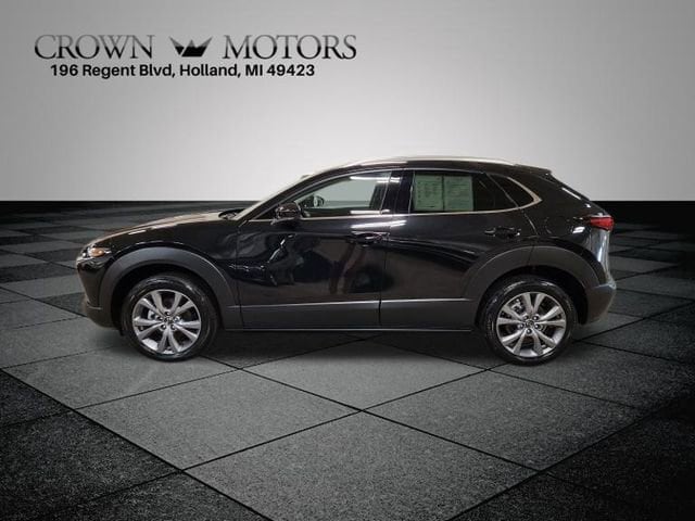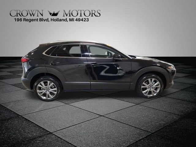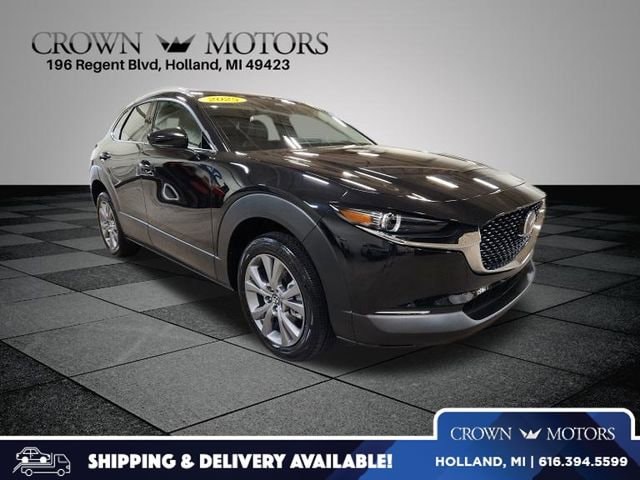Clean CARFAX. Certified. Jet Black Mica 2025 Mazda CX-30 2.5 S Premium Package AWD 6-Speed Automatic SKYACTIV® 2.5L 4-Cylinder DOHC 16V **ONE OWNER**, ** LOW MILES**, **MAZDA CERTIFIED**, **ACCIDENT FREE**, Mazda Certified Pre-Owned Certified, AWD, 12 Speakers, 4-Wheel Disc Brakes, ABS brakes, Air Conditioning, Alloy wheels, AM/FM radio: SiriusXM, AppLink/Apple CarPlay and Android Auto, Auto High-beam Headlights, Automatic temperature control, Brake assist, Bumpers: body-color, Compass, Delay-off headlights, Driver door bin, Driver vanity mirror, Dual front impact airbags, Dual front side impact airbags, Electronic Stability Control, Emergency communication system: Mazda Connected Services (3-year trial subscription included), Exterior Parking Camera Rear, Front anti-roll bar, Front Bucket Seats, Front Center Armrest, Front dual zone A/C, Front reading lights, Front wheel independent suspension, Fully automatic headlights, Heads-Up Display, Heated door mirrors, Heated Front Bucket Seats, Heated front seats, Illuminated entry, Knee airbag, Leather Seat Trim, Leather Shift Knob, Leather steering wheel, Low tire pressure warning, MAZDA CONNECT Infotainment System, Memory seat, Navigation system: MAZDA CONNECT, Occupant sensing airbag, Outside temperature display, Overhead airbag, Overhead console, Panic alarm, Passenger door bin, Passenger vanity mirror, Power door mirrors, Power driver seat, Power Liftgate, Power moonroof, Power steering, Power windows, Radio data system, Radio: AM/FM/HD Audio w/Mazda Online Navigation, Rain sensing wipers, Rear seat center armrest, Rear side impact airbag, Rear window defroster, Rear window wiper, Remote keyless entry, Speed control, Speed-sensing steering, Split folding rear seat, Spoiler, Steering wheel mounted audio controls, Tachometer, Telescoping steering wheel, Tilt steering wheel, Traction control, Trip computer, Turn signal indicator mirrors, Variably intermittent wipers, Wheel Locks, Wheels: 18" x 7J Aluminum Alloy, AWD.