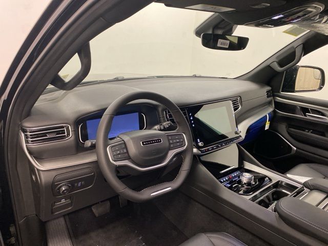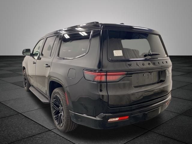 2025 Jeep Wagoneer Series II Diamond Black Crystal Pearlcoat 3 Panel Sunroof, Adjustable Roof Rail Crossbars, Black Exterior Accents, Carbide Appearance Package, Cargo Cover, Navigation System, Premium Group I, Quick Order Package 25F Carbide, Reversible Carpet/Vinyl Cargo Mat, Wheels: 20" x 9" Gloss Black Painted Aluminum, 10 Speakers, 118 MPH Maximum Speed Calibration, 3.55 Rear Axle Ratio, 3rd row seats: bench, 4-Wheel Disc Brakes, ABS brakes, Air Conditioning, Alloy wheels, AM/FM radio: SiriusXM with 360L, Anti-whiplash front head restraints, Apple CarPlay/Android Auto, Audio memory, Auto Adjust In Reverse Exterior Mirrors, Auto-dimming door mirrors, Auto-Dimming Exterior Driver Mirror, Auto-dimming Rear-View mirror, Auto-leveling suspension, Automatic temperature control, Brake assist, Bumpers: body-color, Compass, Delay-off headlights, Driver door bin, Driver vanity mirror, Driver's Seat Mounted Armrest, Dual front impact airbags, Dual front side impact airbags, Electronic Stability Control, Emergency communication system: Jeep Connect, Exterior Mirrors Approach Lamps, Exterior Mirrors w/Memory, Exterior Mirrors w/Supplemental Signals, Four wheel independent suspension, Front anti-roll bar, Front Bucket Seats, Front Center Armrest w/Storage, Front dual zone A/C, Front fog lights, Front reading lights, Fully automatic headlights, Garage door transmitter, Genuine wood console insert, Genuine wood dashboard insert, Genuine wood door panel insert, Heated door mirrors, Heated Exterior Mirrors, Heated front seats, Heated rear seats, Heated steering wheel, Illuminated entry, Knee airbag, Leather Trimmed Bucket Seats, Low tire pressure warning, Memory seat, Normal Duty Suspension, Occupant sensing airbag, Outside temperature display, Overhead airbag, Overhead console, Panic alarm, ParkView Rear Back-Up Camera, Passenger door bin, Passenger seat mounted armrest, Passenger vanity mirror, Power adjustable front head restraints, Power door mirrors, Power driver seat, Power Liftgate, Power passenger seat, Power steering, Power windows, Radio data system, Radio: Uconnect 5 Nav w/10.1" Display, Rain sensing wipers, Rear air conditioning, Rear anti-roll bar, Rear dual zone A/C, Rear reading lights, Rear seat center armrest, Rear window defroster, Rear window wiper, Reclining 3rd row seat, Remote keyless entry, Security system, Speed control, Speed-sensing steering, Speed-Sensitive Wipers, Split folding rear seat, Steering wheel memory, Steering wheel mounted audio controls, Tachometer, Telescoping steering wheel, Tilt steering wheel, Traction control, Trip computer, Turn signal indicator mirrors, Variably intermittent wipers, Ventilated front seats, Voltmeter, Wheels: 20" x 9.0" Premium 2 Aluminum, Wheels: 22" x Price includes: $2000 - 2025 National Black Friday Select Inventory Bonus C
