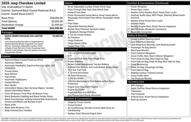 2026 Jeep Cherokee Limited for sale near Holland MI. Serving Grand Haven, Zeeland, Muskegon, and Grand Rapids. Price includes: $1000 - 2026 National Retail Bonus Cash