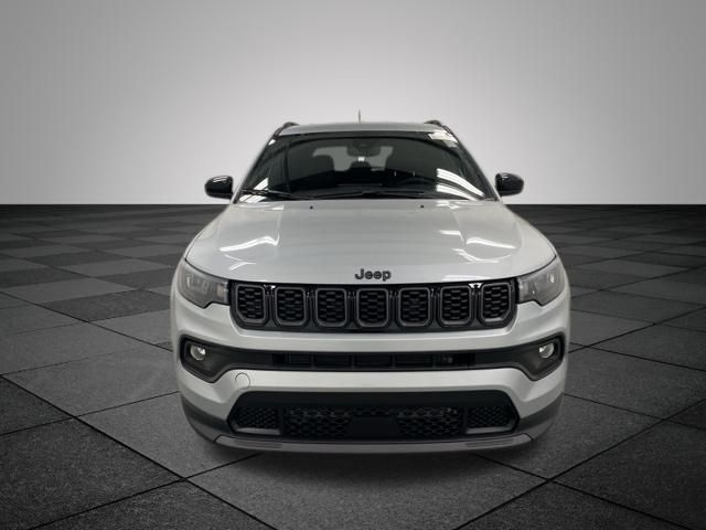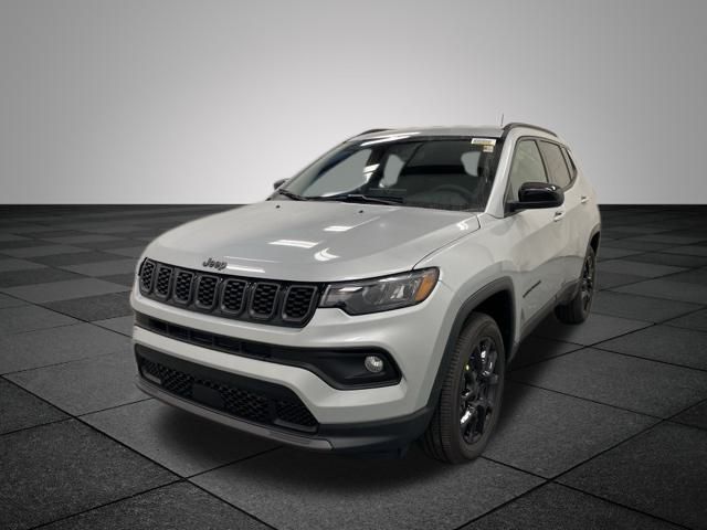 2026 Jeep Compass Latitude Silver 4WD, 10.1" Touchscreen Display, Altitude Special Edition, Black Day Light Opening Moldings, Gloss Black Surround/Neutral Gray Rings, Neutral Gray Exterior Badging, Piano Black Interior Accents, Quick Order Package 29N Altitude, Sliding Sun Visors w/Illuminated Mirrors, Wheels: 18" x 7" Gloss Black Painted Aluminum, 3.73 Final Drive Ratio, 4-Wheel Disc Brakes, 4G LTE Wi-Fi Hot Spot, 6 Speakers, ABS brakes, Air Conditioning, Alloy wheels, AM/FM radio: SiriusXM, Auto High-beam Headlights, Auto-dimming Rear-View mirror, Automatic temperature control, Bluetooth Handsfree Phone & Audio, Brake assist, Bumpers: body-color, Compass, Delay-off headlights, Driver door bin, Driver vanity mirror, Dual front impact airbags, Dual front side impact airbags, Electronic Stability Control, Emergency communication system, Four wheel independent suspension, Front anti-roll bar, Front Bucket Seats, Front Center Armrest w/Storage, Front dual zone A/C, Front fog lights, Front reading lights, Fully automatic headlights, Global Telematics Box Module (TBM), Heated door mirrors, Heated front seats, Heated steering wheel, Illuminated entry, Knee airbag, Leather Shift Knob, Leather steering wheel, Low tire pressure warning, Manufacturer's Statement of Origin (DISC), Occupant sensing airbag, Outside temperature display, Overhead airbag, Overhead console, Panic alarm, ParkView Rear Back-Up Camera, Passenger door bin, Passenger vanity mirror, Power door mirrors, Power driver seat, Power steering, Power windows, Premium Cloth/Vinyl Bucket Seats, Radio: Uconnect 5 w/8.4" Display, Rain sensing wipers, Rear anti-roll bar, Rear seat center armrest, Rear window defroster, Rear window wiper, Remote keyless entry, Security system, SiriusXM Satellite Radio, Speed control, Split folding rear seat, Spoiler, Steering wheel mounted audio controls, Tachometer, Telescoping steering wheel, Tilt steering wheel, Traction control, Trip computer, Variably intermittent wipers, **Bluetooth**, **Rear Back Up Camera**, 4WD, 10.1" Touchscreen Display, Altitude Special Edition, Black Day Light Opening Moldings, Gloss Black Surround/Neutral Gray Rings, Neutral Gray Exterior Badging, Piano Black Interior Accents, Quick Order Package 29N Altitude, Sliding Sun Visors w/Illuminated Mirrors, Wheels: 18" x 7" Gloss Black Painted Aluminum. 23/31 City/Highway MPG