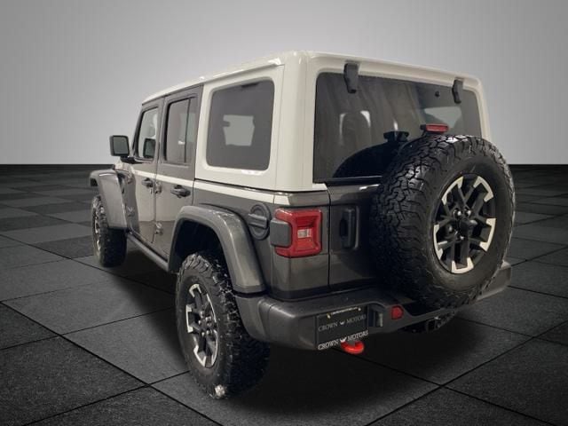 Powered by a robust 3.6L V6 24V VVT engine and equipped with an 8-speed automatic transmission, the Wrangler Rubicon delivers exceptional performance and fuel efficiency, with an EPA-estimated 18 MPG in the city and 23 MPG on the highway. Enjoy the thrill of off-road adventures with the Rubicon's advanced 4WD system, performance suspension, and traction control, all while staying connected with the latest technology features, including a 12.3-inch touchscreen display, Apple CarPlay, and Android Auto.