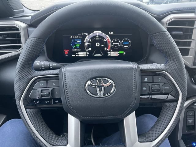 - Leather-wrapped power tilt/telescopic steering wheel with phone, audio, display/infotainment and driver assist controls.