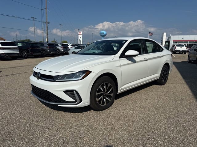Price does not include tax, title, plate and dealer documentation. Price includes: $500 - Retail Customer Bonus. Exp. 01/05/2026 2025 Volkswagen Jetta 1.5T S Black Cloth, 4 Speakers, 4-Wheel Disc Brakes, ABS brakes, Active Blind Spot Monitor, Air Conditioning, Alloy wheels, Auto-dimming Rear-View mirror, Automatic temperature control, Brake assist, Bumpers: body-color, Cloth Seat Trim, Delay-off headlights, Driver door bin, Driver vanity mirror, Dual front impact airbags, Dual front side impact airbags, Electronic Stability Control, Emergency communication system: VW Car-Net Safe & Secure 5-year, Exterior Parking Camera Rear, Front anti-roll bar, Front Bucket Seats, Front Center Armrest, Front dual zone A/C, Front Seats, Front wheel independent suspension, Fully automatic headlights, Heated door mirrors, Illuminated entry, Leather Shift Knob, Leather steering wheel, Low tire pressure warning, Occupant sensing airbag, Outside temperature display, Overhead airbag, Overhead console, Panic alarm, Passenger door bin, Passenger vanity mirror, Power door mirrors, Power steering, Power windows, Radio data system, Radio: MIB3 Composition Color w/8" Touchscreen, Rain sensing wipers, Rear anti-roll bar, Rear reading lights, Rear window defroster, Remote keyless entry, Speed control, Speed-sensing steering, Split folding rear seat, Steering wheel mounted audio controls, Tachometer, Telescoping steering wheel, Tilt steering wheel, Traction control, Trip computer, Variably intermittent wipers, Wheels: 16" 2-Tone Machined Alloy, Black Cloth. 29/39 City/Highway MPG