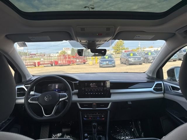 Price does not include tax, title, plate and dealer documentation. Price includes: $2500 - Retail Customer Bonus. Exp. 01/05/2026 2025 Volkswagen Taos 1.5T SE 4-Wheel Disc Brakes, 6 Speakers, ABS brakes, Active Blind Spot Monitor, Air Conditioning, Alloy wheels, AM/FM radio: SiriusXM with 360L, Auto High-beam Headlights, Automatic temperature control, Brake assist, Bumpers: body-color, CloudTex & Cloth Seating Surfaces, Compass, Delay-off headlights, Driver door bin, Driver vanity mirror, Dual front impact airbags, Dual front side impact airbags, Electronic Stability Control, Emergency communication system: VW Car-Net Safe & Secure 5-year, Exterior Parking Camera Rear, Four wheel independent suspension, Front anti-roll bar, Front Bucket Seats, Front Center Armrest, Front dual zone A/C, Front reading lights, Front Strut Rear Multi-Link Suspension, Fully automatic headlights, Heated door mirrors, Heated Front Bucket Seats, Heated front seats, Heated steering wheel, Illuminated entry, Leather Shift Knob, Low tire pressure warning, Occupant sensing airbag, Outside temperature display, Overhead airbag, Overhead console, Panic alarm, Passenger door bin, Passenger vanity mirror, Power door mirrors, Power driver seat, Power steering, Power windows, Radio data system, Radio: MIB3 Composition Media AM/FM/HD, Rain sensing wipers, Rear anti-roll bar, Rear seat center armrest, Rear window defroster, Rear window wiper, Remote keyless entry, Security system, Speed control, Speed-sensing steering, Split folding rear seat, Spoiler, Steering wheel mounted audio controls, Tachometer, Telescoping steering wheel, Tilt steering wheel, Traction control, Trip computer, Variably intermittent wipers, Wheels: 18" 2-Tone Machined Alloy. 25/33 City/Highway MPG