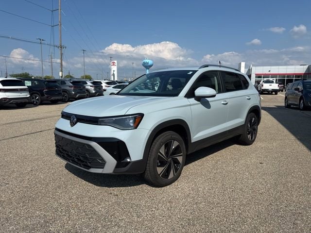 Price does not include tax, title, plate and dealer documentation. Price includes: $2000 - Retail Customer Bonus. Exp. 01/05/2026 2025 Volkswagen Taos 1.5T SE 4-Wheel Disc Brakes, 6 Speakers, ABS brakes, Active Blind Spot Monitor, Air Conditioning, Alloy wheels, AM/FM radio: SiriusXM with 360L, Auto High-beam Headlights, Automatic temperature control, Brake assist, Bumpers: body-color, CloudTex & Cloth Seating Surfaces, Compass, Delay-off headlights, Driver door bin, Driver vanity mirror, Dual front impact airbags, Dual front side impact airbags, Electronic Stability Control, Emergency communication system: VW Car-Net Safe & Secure 5-year, Exterior Parking Camera Rear, Four wheel independent suspension, Front anti-roll bar, Front Bucket Seats, Front Center Armrest, Front dual zone A/C, Front reading lights, Front Strut Rear Multi-Link Suspension, Fully automatic headlights, Heated door mirrors, Heated Front Bucket Seats, Heated front seats, Heated steering wheel, Illuminated entry, Leather Shift Knob, Low tire pressure warning, Occupant sensing airbag, Outside temperature display, Overhead airbag, Overhead console, Panic alarm, Passenger door bin, Passenger vanity mirror, Power door mirrors, Power driver seat, Power steering, Power windows, Radio data system, Radio: MIB3 Composition Media AM/FM/HD, Rain sensing wipers, Rear anti-roll bar, Rear seat center armrest, Rear window defroster, Rear window wiper, Remote keyless entry, Security system, Speed control, Speed-sensing steering, Split folding rear seat, Spoiler, Steering wheel mounted audio controls, Tachometer, Telescoping steering wheel, Tilt steering wheel, Traction control, Trip computer, Variably intermittent wipers, Wheels: 18" 2-Tone Machined Alloy. 25/33 City/Highway MPG