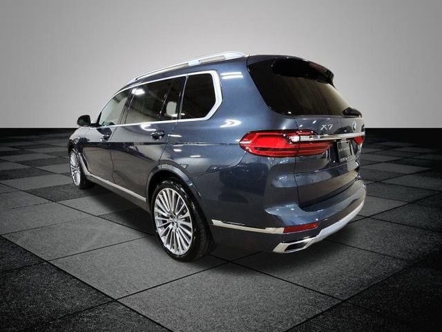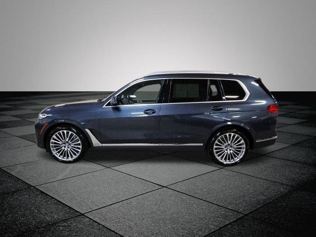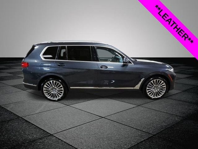 Gray Metallic 2019 BMW X7 xDrive50i AWD 8-Speed Automatic 4.4L V8 DOHC 32V **LEATHER**, **LOCAL TRADE IN**, AWD, 16 Speakers, 3.39 Axle Ratio, 3rd row seats: split-bench, 4-Wheel Disc Brakes, 5-Zone Automatic Climate Control, ABS brakes, Air Conditioning, Alloy wheels, AM/FM radio: SiriusXM, AM/FM Stereo, Anthracite Alcantara Headliner, Apple CarPlay, Apple CarPlay Compatibility, Auto High-beam Headlights, Auto tilt-away steering wheel, Auto-dimming door mirrors, Auto-dimming Rear-View mirror, Auto-leveling suspension, Automatic temperature control, Brake assist, Bumpers: body-color, Cold Weather Package, Compass, Delay-off headlights, Display Key, Driver door bin, Driver vanity mirror, Dual front impact airbags, Dual front side impact airbags, Electronic Stability Control, Emergency communication system: BMW Assist eCall, Executive Package (DISC), Four wheel independent suspension, Front & Rear Heated Seats, Front anti-roll bar, Front Bucket Seats, Front Center Armrest, Front dual zone A/C, Front fog lights, Front reading lights, Fully automatic headlights, Garage door transmitter, Genuine wood console insert, Genuine wood dashboard insert, Genuine wood door panel insert, Gesture Control, Glass Controls, harman/kardon Surround Sound System, harman/kardon® Speakers, Head restraints memory, Head-Up Display, Heads-Up Display, Heated & Cooled Cup Holders, Heated door mirrors, Heated Front Seats, Heated front seats, Heated Front Seats Armrests & Steering Wheel, Icon Adaptive LED Headlights w/Laserlight, Illuminated entry, Knee airbag, Leather Dashboard, Leather Shift Knob, Low tire pressure warning, Memory seat, Multi-Contour Seats, Navigation System, Occupant sensing airbag, Outside temperature display, Overhead airbag, Panic alarm, Panoramic Sky Lounge LED Roof, Passenger door bin, Passenger vanity mirror, Power adjustable front head restraints, Power door mirrors, Power driver seat, Power Front Seats, Power moonroof, Power passenger seat, Power steering, Power windows, Premium Package, Radio data system, Rain sensing wipers, Rear air conditioning, Rear anti-roll bar, Rear dual zone A/C, Rear Electric Side Window Shades, Rear reading lights, Rear seat center armrest, Rear window defroster, Rear window wiper, Reclining 3rd row seat, Remote Engine Start, Remote keyless entry, Roof rack: rails only, Second-Row Captain's Chairs, Security system, SiriusXM Satellite Radio, Soft-Close Automatic Doors, Speed control, Speed-sensing steering, Speed-Sensitive Wipers, Split folding rear seat, Spoiler, Sport steering wheel, Steering wheel memory, Steering wheel mounted audio controls, Tachometer, Telescoping steering wheel, Tilt steering wheel, Traction control, Trip computer, Turn signal indicator mirrors, Variably intermittent wipers, Vernasca Leather Upholstery, Wheels: 21" x 9.5" Y-Spoke Bi-Color (Style 753), Wheels: 22" x 9.5" Fr & 22" x 10.5" Rr Multi-Spoke, AWD.