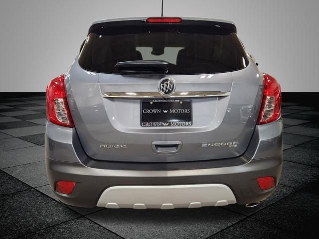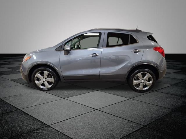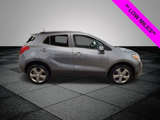 Satin Steel Gray Metallic 2014 Buick Encore Leather AWD 6-Speed Automatic ECOTEC 1.4L I4 SMPI DOHC Turbocharged VVT ** LOW MILES**, **LOCAL TRADE IN**, AWD, 120-Volt Power Outlet, 1SL Equipment Group, 3.53 Final Drive Ratio, 4-Wheel Disc Brakes, 6 Speakers, ABS brakes, Air Conditioning, Alloy wheels, AM/FM radio: SiriusXM, Auto-Dimming Inside Rear-View Mirror, Auto-dimming Rear-View mirror, Automatic temperature control, Brake assist, Bumpers: body-color, CD player, Compass, Delay-off headlights, Driver door bin, Driver vanity mirror, Driver's Seat Mounted Armrest, Dual front impact airbags, Dual front side impact airbags, Dual-Zone Automatic Climate Control, Electronic Stability Control, Emergency communication system: OnStar Directions & Connections, Exterior Parking Camera Rear, Front anti-roll bar, Front Bucket Seats, Front dual zone A/C, Front Fog Lamps, Front fog lights, Front reading lights, Front wheel independent suspension, Fully automatic headlights, Heated door mirrors, Heated Driver & Front Passenger Seats, Heated front seats, Heated steering wheel, Illuminated entry, Knee airbag, Leather steering wheel, Leather-Appointed Seat Trim, Low tire pressure warning, Memory seat, Occupant sensing airbag, Outside temperature display, Overhead airbag, Panic alarm, Passenger door bin, Passenger vanity mirror, Power door mirrors, Power driver seat, Power passenger seat, Power steering, Power windows, Premium audio system: IntelliLink, Radio data system, Radio: AM/FM Audio System w/MP3 CD Player, Rear seat center armrest, Rear side impact airbag, Rear window defroster, Rear window wiper, Remote keyless entry, Remote Vehicle Starter System, Ride & Handling Suspension, Roof rack: rails only, Security system, SiriusXM Satellite Radio, Speed control, Speed-sensing steering, Split folding rear seat, Spoiler, Steering wheel mounted audio controls, Tachometer, Telescoping steering wheel, Tilt steering wheel, Traction control, Trip computer, Turn signal indicator mirrors, Variably intermittent wipers, Wheels: 18" Painted Cast Aluminum, AWD.