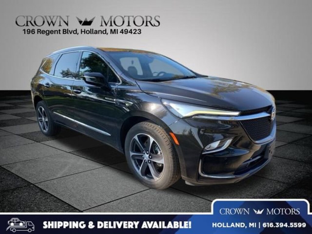 Clean CARFAX. Ebony Twilight Metallic 2022 Buick Enclave Essence AWD 9-Speed Automatic 3.6L V6 SIDI VVT AWD, 18" Aluminum Wheels, 3.49 Axle Ratio, 3rd row seats: split-bench, 4-Wheel Disc Brakes, 6 Speakers, 6-Speaker Audio System Feature, 6-Way Power Front Passenger Seat Adjuster, 7-Passenger Seating, 8-Way Power Driver Seat Adjuster, ABS brakes, Air Conditioning, Alloy wheels, AM/FM radio: SiriusXM with 360L, Auto High-beam Headlights, Auto-dimming door mirrors, Auto-dimming Rear-View mirror, Automatic temperature control, Brake assist, Bumpers: body-color, Compass, Delay-off headlights, Driver door bin, Driver vanity mirror, Dual front impact airbags, Dual front side impact airbags, Electronic Stability Control, Emergency communication system: OnStar and Buick connected services capable, Experience Buick Package, Four wheel independent suspension, Front & Rear Park Assist, Front anti-roll bar, Front Bucket Seats, Front Center Armrest, Front dual zone A/C, Front Mounting License Plate Bracket Package, Front Power Sliding Moonroof, Front reading lights, Fully automatic headlights, Garage door transmitter, Heated door mirrors, Heated Driver & Front Passenger Seats, Heated front seats, Heated Steering Wheel, Heated steering wheel, Illuminated entry, Leather steering wheel, Low tire pressure warning, Not Equipped w/Front & Rear Park Assist, Occupant sensing airbag, Outside temperature display, Overhead airbag, Overhead console, Panic alarm, Passenger door bin, Passenger vanity mirror, Perforated Leather-Appointed Seat Trim, Power door mirrors, Power Driver Lumbar Control Seat Adjuster, Power driver seat, Power Liftgate, Power Passenger Lumbar Control Seat Adjuster, Power passenger seat, Power steering, Power windows, Preferred Equipment Group 1SL, Premium audio system: Buick Infotainment System, Radio data system, Radio: Buick Infotainment System AM/FM Stereo, Rear air conditioning, Rear anti-roll bar, Rear reading lights, Rear window defroster, Rear window wiper, Remote keyless entry, Roof rack: rails only, Security system, SiriusXM w/360L, Speed control, Speed-sensing steering, Spoiler, Sport Grille w/Body-Color Surround, Sport Touring Edition, Sport Touring Liftgate Badging, Steering wheel mounted audio controls, Tachometer, Telescoping steering wheel, Tilt steering wheel, Traction control, Trip computer, Turn signal indicator mirrors, Variably intermittent wipers, Voltmeter, Wheels: 20" Machined Face Aluminum, Wireless Apple CarPlay/Wireless Android Auto, AWD.
