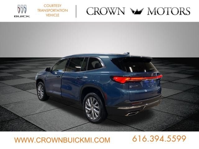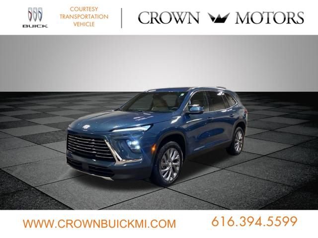 Ocean Blue Metallic 2025 Buick Enclave Preferred AWD 8-Speed Automatic 2.5L DOHC Enclave Preferred, AWD, Ocean Blue Metallic, Sandstone Seats With Ebony Interior Accents Artificial Leather, 3rd row seats: split-bench, Bose Premium 12-Speaker Audio System, Compass, Heated front seats, Leatherette Seat Trim, Power Liftgate, Preferred Equipment Group 1SD, Wireless Apple CarPlay, Wireless Google Android Auto, 12 Speakers, 4-Wheel Disc Brakes, ABS brakes, Air Conditioning, Alloy wheels, AM/FM radio: SiriusXM with 360L, Auto High-beam Headlights, Auto-dimming door mirrors, Auto-dimming Rear-View mirror, Automatic temperature control, Brake assist, Bumpers: body-color, Delay-off headlights, Driver 4-Way Power Lumbar Seat Adjuster, Driver 8-Way Power Seat Adjuster, Driver door bin, Driver vanity mirror, Dual front impact airbags, Dual front side impact airbags, Electronic Stability Control, Emergency communication system: OnStar and Buick connected services capable, Four wheel independent suspension, Front anti-roll bar, Front Bucket Seats, Front Center Armrest, Front dual zone A/C, Front Passenger 4-Way Power Lumbar Seat Adjuster, Front Passenger 6-Way Power Seat Adjuster, Front reading lights, Fully automatic headlights, Heated door mirrors, Heated steering wheel, Illuminated entry, Leather steering wheel, Low tire pressure warning, Occupant sensing airbag, Outside temperature display, Overhead airbag, Overhead console, Panic alarm, Passenger door bin, Passenger vanity mirror, Power door mirrors, Power driver seat, Power passenger seat, Power steering, Power windows, Premium audio system: Buick Infotainment System, Radio data system, Radio: Infotainment Center, Rear air conditioning, Rear anti-roll bar, Rear reading lights, Rear side impact airbag, Rear window defroster, Rear window wiper, Remote keyless entry, Security system, Speed control, Speed-sensing steering, Spoiler, Steering wheel mounted audio controls, Tachometer, Telescoping steering wheel, Tilt steering wheel, Traction control, Trip computer, Turn signal indicator mirrors, Variably intermittent wipers, Voltmeter, Enclave Preferred, AWD, Ocean Blue Metallic, Sandstone Seats With Ebony Interior Accents Artificial Leather, 3rd row seats: split-bench, Bose Premium 12-Speaker Audio System, Compass, Heated front seats, Leatherette Seat Trim, Power Liftgate, Preferred Equipment Group 1SD, Wireless Apple CarPlay, Wireless Google Android Auto.