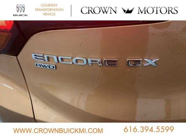 Clean CARFAX. Copper Ice Metallic 2025 Buick Encore GX Preferred AWD 9-Speed Automatic ECOTEC 1.3L Turbo Encore GX Preferred, AWD, Copper Ice Metallic, Compass, Preferred Equipment Group 1SB, Remote keyless entry, 2 USB Ports (1 Type-A, 1 Type-C), 3.17 Final Drive Axle Ratio, 4-Way Manual Passenger Seat Adjuster, 4-Wheel Disc Brakes, 6-Way Manual Driver Seat Adjuster, 7 Speakers, ABS brakes, Air Conditioning, Alloy wheels, AM/FM radio: SiriusXM, Auto High-beam Headlights, Automatic temperature control, Brake assist, Bumpers: body-color, Cloth w/Leatherette Seat Trim, Delay-off headlights, Driver door bin, Driver vanity mirror, Dual front impact airbags, Dual front side impact airbags, Electronic Stability Control, Emergency communication system: OnStar and Buick connected services capable, Enhanced Performance 7-Speaker System w/Amplifier, Front anti-roll bar, Front Bucket Seats, Front Center Armrest, Front reading lights, Front wheel independent suspension, Fully automatic headlights, Heated door mirrors, Illuminated entry, Knee airbag, Low tire pressure warning, Occupant sensing airbag, Outside temperature display, Overhead airbag, Overhead console, Panic alarm, Passenger door bin, Passenger vanity mirror, Power door mirrors, Power steering, Power windows, Radio data system, Radio: Audio System w/AM/FM, Rear reading lights, Rear side impact airbag, Rear window defroster, Rear window wiper, Ride & Handling Suspension, Security system, SiriusXM Trial Subscription, Speed control, Speed-sensing steering, Split folding rear seat, Spoiler, Steering wheel mounted audio controls, Tachometer, Telescoping steering wheel, Tilt steering wheel, Traction control, Trip computer, Variably intermittent wipers, Wheels: 18" Bright Silver Painted Aluminum, Wireless Apple CarPlay/Wireless Android Auto, Encore GX Preferred, AWD, Copper Ice Metallic, Compass, Preferred Equipment Group 1SB, Remote keyless entry.