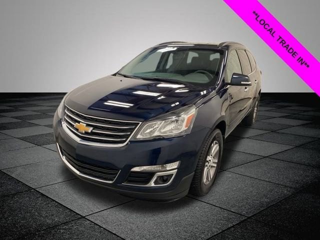 Clean CARFAX. Blue Velvet Metallic 2017 Chevrolet Traverse LT 1LT AWD 6-Speed Automatic 3.6L V6 SIDI **ACCIDENT FREE**, **LOCAL TRADE IN**, AWD, 18" x 7.5" Machined Aluminum Wheels, 1st & 2nd Row All-Weather Floor Mats, 3.16 Axle Ratio, 3rd row seats: split-bench, 4-Wheel Disc Brakes, 6 Speakers, 7-Passenger Seating (2-2-3 Seating Configuration), 8-Passenger Seating (2-3-3 Seating Configuration), 8-Way Power Driver Seat w/Power Lumbar, ABS brakes, Air Conditioning, Alloy wheels, AM/FM radio: SiriusXM, Bluetooth® For Phone, Body-Color Bodyside Moldings, Body-Color Heated Power-Adjustable Outside Mirrors, Bodyside moldings, Brake assist, Bumpers: body-color, CD player, Compass, Delay-off headlights, Driver door bin, Driver vanity mirror, Dual front impact airbags, Dual front side impact airbags, Electronic Stability Control, Emergency communication system, Enhanced Driver Information Center, Exterior Parking Camera Rear, Four wheel independent suspension, Front anti-roll bar, Front Bucket Seats, Front Center Armrest w/Storage, Front Fog Lamps, Front fog lights, Front reading lights, Frontal & Side-Impact Airbags, Fully automatic headlights, Heated door mirrors, Heated Driver & Front Passenger Seats, Heavy-Duty Cooling System, Illuminated entry, Interior Wood Grain Center Stack & Interior Trim, Leather-Wrapped Steering Wheel, Low tire pressure warning, Occupant sensing airbag, Outside temperature display, Overhead airbag, Panic alarm, Passenger door bin, Passenger vanity mirror, Power door mirrors, Power driver seat, Power steering, Power windows, Preferred Equipment Group 1LT, Premium Cloth Seat Trim, Radio data system, Radio: Color Touch AM/FM/SiriusXM/CD Player, Rear air conditioning, Rear anti-roll bar, Rear Park Assist, Rear reading lights, Rear seat center armrest, Rear window defroster, Rear window wiper, Remote keyless entry, Remote Vehicle Start, Roof rack: rails only, Security system, SiriusXM Satellite Radio, Speed control, Split folding rear seat, Spoiler, Standard Speaker System, Steering wheel mounted audio controls, Tachometer, Telescoping steering wheel, Tilt steering wheel, Traction control, Trailer Hitch, Trailering Equipment, Trip computer, Turn signal indicator mirrors, Variably intermittent wipers, Voltmeter, AWD.