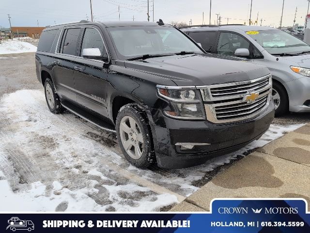 10 Speakers, 12-Volt Auxiliary Power Outlet (5), 1st & 2nd Row Color-Keyed Carpeted Floor Mats, 3.08 Rear Axle Ratio, 3rd Row 60/40 Power Fold Split-Bench, 3rd row seats: split-bench, 4-Wheel Antilock Disc Brakes, 4-Wheel Disc Brakes, 6-Way Power Front Passenger Seat Adjuster, ABS brakes, Adaptive suspension, Adjustable pedals, Air Conditioning, Alloy wheels, AM/FM radio: SiriusXM, Apple CarPlay/Android Auto, Auto High-beam Headlights, Auto-dimming door mirrors, Auto-Dimming Inside Rear-View Mirror, Auto-dimming Rear-View mirror, Automatic temperature control, Black Assist Steps, Black Roof Rack Cross Bars, Bodyside moldings, Bose Centerpoint Premium 10-Speaker Surround Sound, Brake assist, Bumpers: body-color, CD player, Color-Keyed Carpeting Floor Covering, Compass, Delay-off headlights, Driver door bin, Driver Inboard & Front Passenger Airbags, Driver vanity mirror, Dual front impact airbags, Dual front side impact airbags, Electronic Cruise Control w/Set & Resume Speed, Electronic Stability Control, Emergency communication system: OnStar Guidance, Enhanced Driver Alert Package, Exterior Parking Camera Rear, Floor Console w/Storage Area, Fog Lamps, Forward Collision Alert, Front & Rear Park Assist, Front anti-roll bar, Front Bucket Seats, Front Center Armrest, Front dual zone A/C, Front fog lights, Front reading lights, Front wheel independent suspension, Fully automatic headlights, Garage door transmitter, Hands Free Power Liftgate, HD Radio, Headphones, Heated & Ventilated Driver & Front Passenger Seats, Heated & Ventilated Front Reclining Bucket Seats, Heated 2nd Row Outboard Seats, Heated door mirrors, Heated front seats, Heated Leather Wrapped Steering Wheel, Heated rear seats, Heated steering wheel, High-Intensity Discharge Headlights, Illuminated entry, Intellibeam Headlamps w/Automatic High Beam On/Off, Lane Change Alert w/Side Blind Zone Alert, Lane Keep Assist w/Lane Departure Warning, Leather Shift Knob, License Plate Front Mounting Package, Low Speed Forward Automatic Braking, Low tire pressure warning, Magnetic Ride Control Suspension Package, Memory seat, Memory Settings, Navigation System, Occupant sensing airbag, OnStar Basic Plan For 5 Years, Outside temperature display, Overhead airbag, Overhead console, Panic alarm, Passenger door bin, Passenger vanity mirror, Passive Entry System, Pedal memory, Perforated Leather-Appointed Seat Trim, Power door mirrors, Power driver seat, Power Folding & Adjustable Heated Outside Mirrors, Power Liftgate, Power passenger seat, Power Release 2nd Row Bucket Seats, Power steering, Power Tilt & Telescoping Steering Column, Power windows, Power-Adjustable Accelerator & Brake Pedals, Preferred Equipment Group 1LZ, Push Button Keyless Start, Radio: Chevrolet MyLink AM/FM Stereo w/Navigation, Rain sensing wipers, Rear air conditioning, Rear anti-roll bar, Rear audio controls, Rear Cross-Traffic Alert, Rear reading lights, Rear window defroster, Rear window wiper, Remote keyless entry, Remote Vehicle Start, Roof rack: rails only, Roof-Mounted Luggage Rack Side Rails, Safety Alert Seat, Security system, Single-Slot CD/MP3 Player, SiriusXM NavTraffic, SiriusXM Satellite Radio, Speed control, Speed-sensing steering, Split folding rear seat, Spoiler, Steering wheel memory, Steering wheel mounted audio controls, Tachometer, Telescoping steering wheel, Tilt steering wheel, Traction control, Trip computer, Turn signal indicator mirrors, Universal Home Remote, Variably intermittent wipers, Ventilated front seats, Voltmeter, Wheels: 20" x 9" Polished-Aluminum, Wireless Charging.