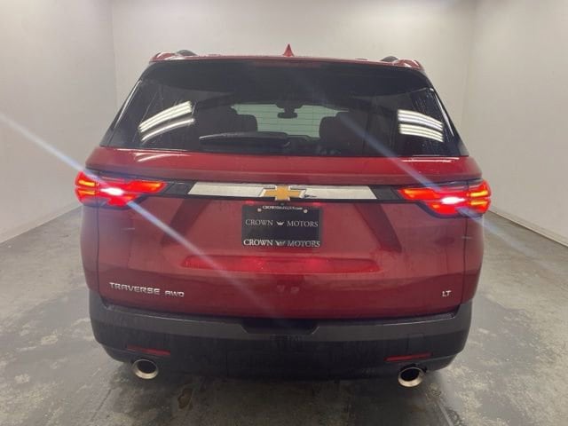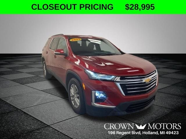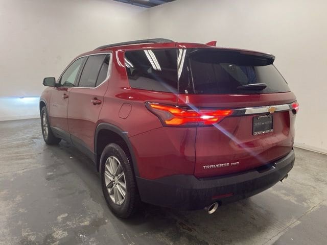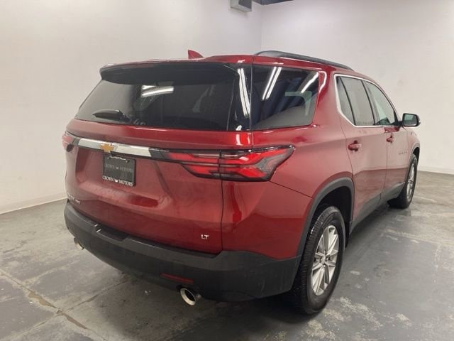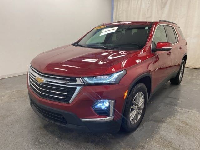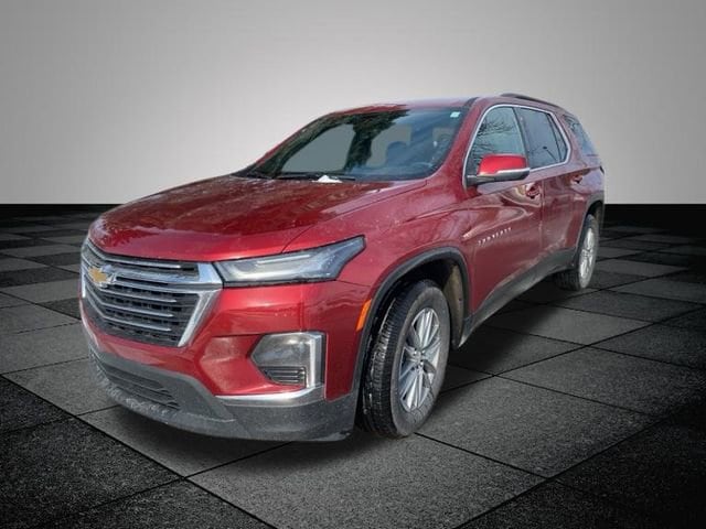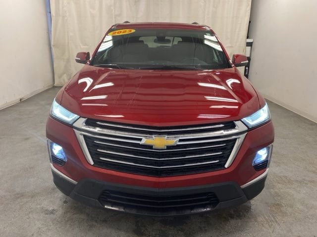Clean CARFAX. Radiant Red Tintcoat 2023 Chevrolet Traverse LT 1LT AWD 9-Speed Automatic 3.6L V6 SIDI VVT AWD, 2-Way Manual Front Passenger Seat Adjuster, 3.49 Axle Ratio, 3rd row seats: split-bench, 4-Wheel Disc Brakes, 6 Speakers, 6-Speaker Audio System Feature, 8-Way Power Driver Seat Adjuster, ABS brakes, Air Conditioning, Alloy wheels, AM/FM radio: SiriusXM, Apple CarPlay/Android Auto, Auto High-beam Headlights, Automatic temperature control, Black Roof Rails, Brake assist, Bumpers: body-color, Compass, Delay-off headlights, Driver door bin, Driver vanity mirror, Dual front impact airbags, Dual front side impact airbags, Electronic Stability Control, Emergency communication system, Exterior Parking Camera Rear, Four wheel independent suspension, Front anti-roll bar, Front Bucket Seats, Front Center Armrest, Front dual zone A/C, Front reading lights, Fully automatic headlights, Garage door transmitter, Heated door mirrors, Heated Driver & Front Passenger Seats, Heated front seats, Illuminated entry, Leather steering wheel, Low tire pressure warning, Not Equipped w/Rear Park Assist (060), Occupant sensing airbag, Outside temperature display, Overhead airbag, Overhead console, Panic alarm, Passenger door bin, Passenger vanity mirror, Power door mirrors, Power Driver Lumbar Control, Power driver seat, Power Liftgate, Power steering, Power windows, Preferred Equipment Group 1LT, Premium Cloth Seat Trim, Radio data system, Radio: Chevrolet Infotainment 3 Plus System, Rear air conditioning, Rear anti-roll bar, Rear reading lights, Rear window defroster, Rear window wiper, Remote keyless entry, Security system, SiriusXM w/360L, Speed control, Speed-sensing steering, Spoiler, Steering wheel mounted audio controls, Tachometer, Telescoping steering wheel, Tilt steering wheel, Traction control, Trip computer, Turn signal indicator mirrors, Variably intermittent wipers, Voltmeter, Wheels: 18" Bright Silver-Painted Aluminum, AWD.
