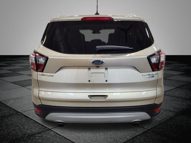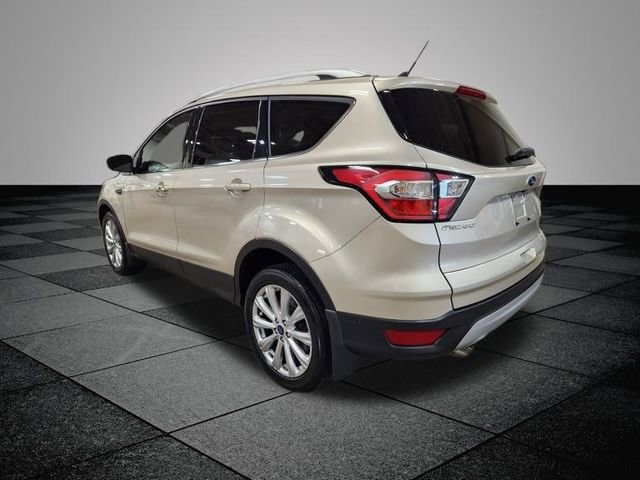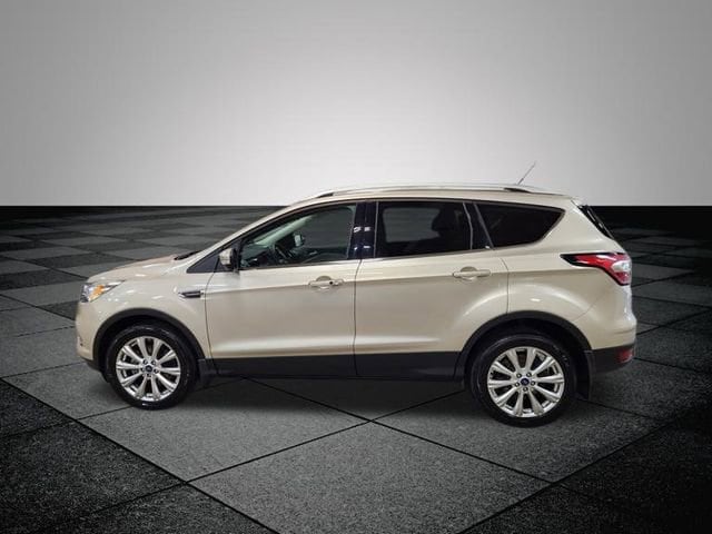 CARFAX One-Owner. White Gold 2018 Ford Escape Titanium 4WD 6-Speed Automatic EcoBoost 2.0L I4 GTDi DOHC Turbocharged VCT **LEATHER**, **LOCAL TRADE IN**, Escape Titanium, 4WD, 10 Speakers, 3.07 Axle Ratio, 4-Wheel Disc Brakes, ABS brakes, Adaptive Cruise Control & Fwd Collision Warning, Air Conditioning, Alloy wheels, AM/FM radio: SiriusXM, AppLink/Apple CarPlay and Android Auto, Auto High-Beam Headlamps, Auto-dimming Rear-View mirror, Automatic temperature control, Blind Spot Info System w/Cross-Traffic Alert, Brake assist, Bumpers: body-color, CD player, Compass, Delay-off headlights, Driver door bin, Driver vanity mirror, Dual front impact airbags, Dual front side impact airbags, Electronic Stability Control, Emergency communication system: SYNC 3 911 Assist, Equipment Group 400A, Exterior Parking Camera Rear, Ford Safe & Smart Package, Four wheel independent suspension, Front anti-roll bar, Front Bucket Seats, Front Center Armrest, Front dual zone A/C, Front fog lights, Front reading lights, Fully automatic headlights, Garage door transmitter, Heated door mirrors, Heated front seats, Heated Leather-Trimmed Front Bucket Seats, Heated steering wheel, High-Intensity Discharge Headlights, Illuminated entry, Knee airbag, Lane-Keeping System, Leather Shift Knob, Low tire pressure warning, Memory seat, Navigation System, Occupant sensing airbag, Outside temperature display, Overhead airbag, Overhead console, Panic alarm, Passenger door bin, Passenger vanity mirror, Power door mirrors, Power driver seat, Power Liftgate, Power passenger seat, Power steering, Power windows, Radio data system, Radio: AM/FM Stereo w/Single-CD/MP3 Player, Rain-Sensing Wipers, Rear anti-roll bar, Rear reading lights, Rear seat center armrest, Rear window defroster, Rear window wiper, Remote keyless entry, Roof rack: rails only, Security system, Speed control, Speed-sensing steering, Split folding rear seat, Steering wheel mounted audio controls, SYNC 3 Communications & Entertainment System, SYNC Connect, Tachometer, Telescoping steering wheel, Tilt steering wheel, Traction control, Trip computer, Turn signal indicator mirrors, Variably intermittent wipers, Voice-Activated Touchscreen Navigation System, Wheels: 18" Sparkle Silver-Painted Aluminum, Escape Titanium, 4WD.