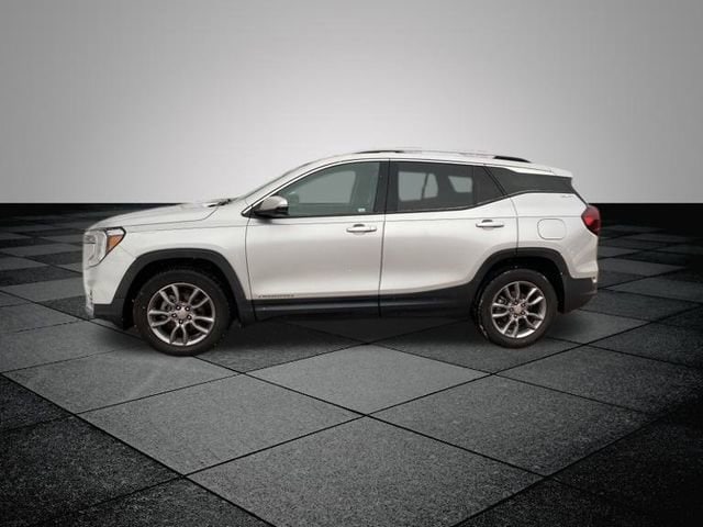 NEW TIRES!! CARFAX One-Owner. Clean CARFAX. Quicksilver Metallic 2022 GMC Terrain SLT AWD 9-Speed Automatic 1.5L DOHC **ONE OWNER**, ** LOW MILES**, **ACCIDENT FREE**, AWD, 2 USB Data Ports, 2 USB Data Ports w/SD Card Reader, 3.47 Axle Ratio, 4-Wheel Disc Brakes, 6 Speakers, 6-Speaker Audio System Feature, 6-Way Power Front Passenger Seat, 8-Way Power Driver Seat Adjuster, ABS brakes, Adaptive Cruise Control, Air Conditioning, Alloy wheels, AM/FM radio: SiriusXM, Auto High-beam Headlights, Auto-dimming Rear-View mirror, Automatic temperature control, Bluetooth® For Phone, Brake assist, Bumpers: body-color, Compass, Delay-off headlights, Driver & Front Passenger Heated Seats, Driver door bin, Driver vanity mirror, Dual front impact airbags, Dual front side impact airbags, Electronic Stability Control, Emergency communication system: OnStar Guidance, Four wheel independent suspension, Front & Rear Park Assist, Front anti-roll bar, Front Bucket Seats, Front Center Armrest, Front dual zone A/C, Front fog lights, Front Passenger 2-Way Power Lumbar, Front reading lights, Fully automatic headlights, Garage door transmitter, GMC Pro Safety Plus, HD Surround Vision, Head-Up Display, Heated door mirrors, Heated front seats, Heated steering wheel, Illuminated entry, Infotainment Package II, Lane Change Alert w/Side Blind Zone Alert, Lane Departure Warning System, License Plate Front Mounting Package, Low tire pressure warning, Memory seat, Not Equipped w/Driver & Fr Pass Heated Seats, Occupant sensing airbag, Outside temperature display, Overhead airbag, Overhead console, Panic alarm, Passenger door bin, Passenger vanity mirror, Perforated Leather-Appointed Seat Trim, Power door mirrors, Power Driver Lumbar Control, Power driver seat, Power Liftgate, Power passenger seat, Power steering, Power windows, Preferred Equipment Group 4SA, Premium 7-Speaker Bose Sound System w/Amplifier, Radio data system, Radio: GMC Infotainment Audio System w/8" Display, Radio: GMC Infotainment Audio System w/Navigation, Rear anti-roll bar, Rear Cross-Traffic Alert, Rear Park Assist, Rear seat center armrest, Rear window defroster, Rear window wiper, Remote keyless entry, Roof rack: rails only, Safety Alert Seat, Security system, SiriusXM Radio, Skyscape Power Sunroof w/Power Sunscreen, Speed control, Speed-sensing steering, Split folding rear seat, Spoiler, Steering wheel mounted audio controls, Tachometer, Tech Package, Telescoping steering wheel, Tilt steering wheel, Traction control, Trip computer, Turn signal indicator mirrors, Variably intermittent wipers, Wheels: 18" x 7" Silver Painted Aluminum, Wireless Apple CarPlay/Wireless Android Auto, AWD.