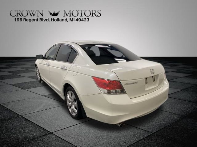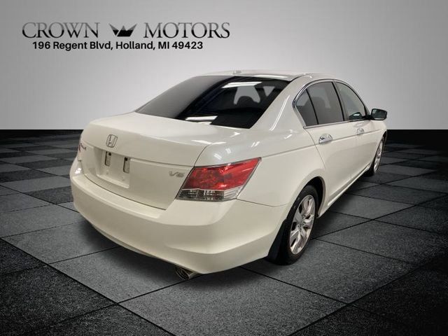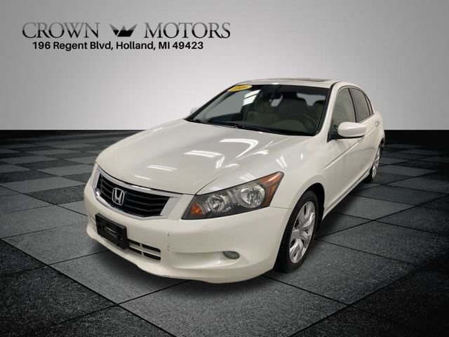 White 2009 Honda Accord EX-L 3.5 FWD 5-Speed Automatic with Overdrive 3.5L V6 SOHC i-VTEC 24V 3.5L V6 SOHC i-VTEC 24V, Leather, 17" Alloy Wheels, 4-Wheel Disc Brakes, 7 Speakers, ABS brakes, Air Conditioning, Alloy wheels, AM/FM radio: XM, Anti-whiplash front head restraints, Auto-dimming Rear-View mirror, Automatic temperature control, Brake assist, Bumpers: body-color, CD player, Compass, Delay-off headlights, Driver door bin, Driver vanity mirror, Dual front impact airbags, Dual front side impact airbags, Electronic Stability Control, Four wheel independent suspension, Front anti-roll bar, Front Bucket Seats, Front Center Armrest, Front dual zone A/C, Front fog lights, Front reading lights, Fully automatic headlights, Garage door transmitter: HomeLink, Heated door mirrors, Heated Front Bucket Seats, Heated front seats, Illuminated entry, Leather Shift Knob, Leather-Trimmed Seat Trim, Low tire pressure warning, Occupant sensing airbag, Outside temperature display, Overhead airbag, Overhead console, Panic alarm, Passenger door bin, Passenger vanity mirror, Power door mirrors, Power driver seat, Power moonroof, Power passenger seat, Power steering, Power windows, Radio data system, Rear anti-roll bar, Rear seat center armrest, Rear window defroster, Remote keyless entry, Security system, Speed control, Speed-sensing steering, Speed-Sensitive Wipers, Steering wheel mounted audio controls, Tachometer, Telescoping steering wheel, Tilt steering wheel, Traction control, Trip computer, Variably intermittent wipers, XM Satellite Radio, 3.5L V6 SOHC i-VTEC 24V, Leather.