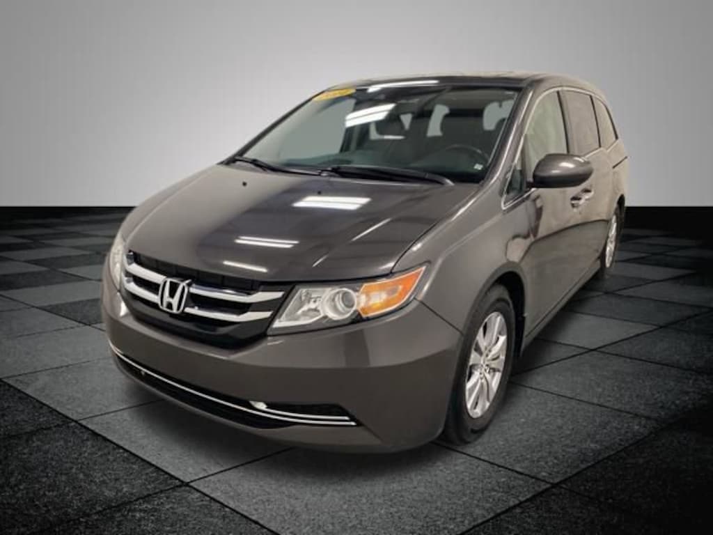 2014 Honda Odyssey EX-L FWD 6-Speed Automatic 3.5L V6 SOHC i-VTEC 24V 17" x 7" Alloy Wheels, 3rd row seats: split-bench, 4-Wheel Disc Brakes, 4.25 Axle Ratio, 7 Speakers, ABS brakes, Air Conditioning, Alloy wheels, AM/FM radio: XM, Anti-whiplash front head restraints, Auto-dimming Rear-View mirror, Automatic temperature control, Brake assist, Bumpers: body-color, CD player, Delay-off headlights, Driver door bin, Driver vanity mirror, Driver's Seat Mounted Armrest, Dual front impact airbags, Dual front side impact airbags, Electronic Stability Control, Exterior Parking Camera Rear, Four wheel independent suspension, Front anti-roll bar, Front Bucket Seats, Front dual zone A/C, Front reading lights, Fully automatic headlights, Garage door transmitter: HomeLink, Heated door mirrors, Heated Front Bucket Seats, Heated front seats, Illuminated entry, Leather Seat Trim, Leather Shift Knob, Leather steering wheel, Low tire pressure warning, Occupant sensing airbag, Outside temperature display, Overhead airbag, Overhead console, Panic alarm, Passenger door bin, Passenger seat mounted armrest, Passenger vanity mirror, Power door mirrors, Power driver seat, Power Liftgate, Power moonroof, Power passenger seat, Power steering, Power windows, Radio data system, Rear air conditioning, Rear reading lights, Rear seat center armrest, Rear window defroster, Rear window wiper, Reclining 3rd row seat, Remote keyless entry, Security system, Speed control, Speed-sensing steering, Speed-Sensitive Wipers, Split folding rear seat, Spoiler, Steering wheel mounted audio controls, Tachometer, Telescoping steering wheel, Tilt steering wheel, Traction control, Trip computer, Variably intermittent wipers.