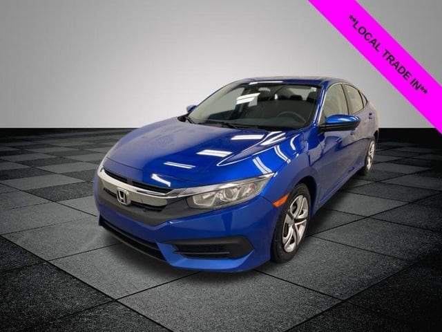 Aegean Blue Metallic 2018 Honda Civic LX FWD CVT 2.0L I4 DOHC 16V i-VTEC ** LOW MILES**, **LOCAL TRADE IN**, Black Cloth, 16" Wheels w/Full Covers, 4 Speakers, 4-Wheel Disc Brakes, ABS brakes, Air Conditioning, AM/FM radio, Automatic temperature control, Brake assist, Bumpers: body-color, Cloth Seat Trim, Compass, Delay-off headlights, Driver door bin, Driver vanity mirror, Dual front impact airbags, Dual front side impact airbags, Electronic Stability Control, Exterior Parking Camera Rear, Four wheel independent suspension, Front anti-roll bar, Front Bucket Seats, Front Center Armrest, Front reading lights, Fully automatic headlights, Illuminated entry, Low tire pressure warning, Occupant sensing airbag, Outside temperature display, Overhead airbag, Panic alarm, Passenger door bin, Passenger vanity mirror, Power door mirrors, Power steering, Power windows, Radio data system, Radio: 160-Watt AM/FM Audio System, Rear anti-roll bar, Rear window defroster, Reclining Front Bucket Seats, Remote keyless entry, Security system, Speed control, Speed-sensing steering, Steering wheel mounted audio controls, Tachometer, Telescoping steering wheel, Tilt steering wheel, Traction control, Black Cloth.