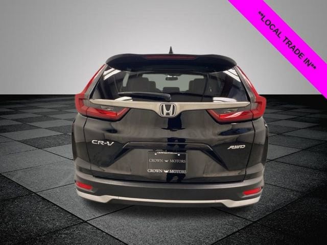 CARFAX One-Owner. Clean CARFAX. Black 2020 Honda CR-V EX-L AWD CVT 1.5L I4 DOHC 16V **ONE OWNER**, **LEATHER**, **ACCIDENT FREE**, **LOCAL TRADE IN**, AWD, 18" Alloy Wheels, 4-Wheel Disc Brakes, 5.64 Axle Ratio, 8 Speakers, ABS brakes, Adaptive Cruise Control: Adaptive Cruise Control (ACC) with Low-Speed Follow, Air Conditioning, Alloy wheels, AM/FM radio: SiriusXM, Apple CarPlay/Android Auto, Auto High-beam Headlights, Auto-dimming Rear-View mirror, Automatic temperature control, Blind Spot Information (BSI) System warning, Brake assist, Bumpers: body-color, Compass, Delay-off headlights, Driver door bin, Driver vanity mirror, Dual front impact airbags, Dual front side impact airbags, Electronic Stability Control, Exterior Parking Camera Rear, Forward collision: Collision Mitigation Braking System (CMBS) + FCW mitigation, Four wheel independent suspension, Front anti-roll bar, Front Bucket Seats, Front Center Armrest, Front dual zone A/C, Front fog lights, Front reading lights, Garage door transmitter: HomeLink, Heated door mirrors, Heated Front Bucket Seats, Heated front seats, Illuminated entry, Leather Seat Trim, Leather Shift Knob, Low tire pressure warning, Memory seat, Occupant sensing airbag, Outside temperature display, Overhead airbag, Overhead console, Panic alarm, Passenger door bin, Passenger vanity mirror, Power door mirrors, Power driver seat, Power Liftgate, Power moonroof, Power passenger seat, Power steering, Power windows, Radio data system, Radio: 180-Watt AM/FM/HD/SiriusXM Audio System, Rear anti-roll bar, Rear seat center armrest, Rear window defroster, Rear window wiper, Remote keyless entry, Security system, Speed control, Speed-sensing steering, Speed-Sensitive Wipers, Split folding rear seat, Spoiler, Steering wheel mounted audio controls, Tachometer, Telescoping steering wheel, Tilt steering wheel, Traction control, Trip computer, Turn signal indicator mirrors, Variably intermittent wipers, AWD.