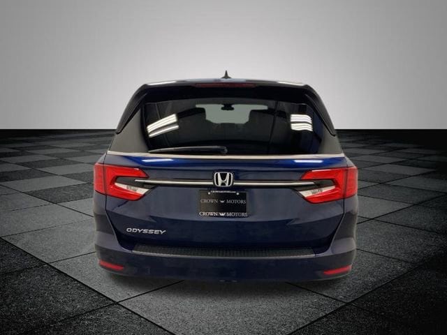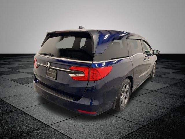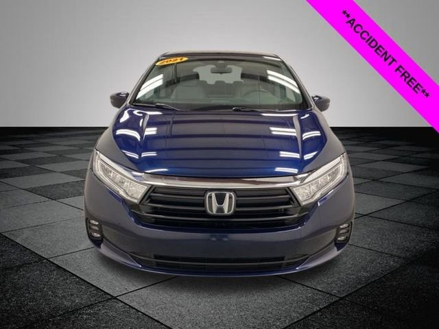 Clean CARFAX. Obsidian Blue Pearl 2021 Honda Odyssey EX FWD 10-Speed Automatic 3.5L V6 SOHC i-VTEC 24V **ACCIDENT FREE**, **LOCAL TRADE IN**, 3.61 Axle Ratio, 3rd row seats: split-bench, 4-Wheel Disc Brakes, 7 Speakers, A/V remote: CabinControl, ABS brakes, Adaptive Cruise Control: Adaptive Cruise Control (ACC) with Low-Speed Follow, Air Conditioning, Alloy wheels, AM/FM radio: SiriusXM, Anti-whiplash front head restraints, Apple CarPlay/Android Auto, Auto High-beam Headlights, Automatic temperature control, Blind Spot Information (BSI) System warning, Brake assist, Bumpers: body-color, Cloth Seat Trim, Delay-off headlights, Driver door bin, Driver vanity mirror, Driver's Seat Mounted Armrest, Dual front impact airbags, Dual front side impact airbags, Electronic Stability Control, Exterior Parking Camera Rear, Forward collision: Collision Mitigation Braking System (CMBS) + FCW mitigation, Four wheel independent suspension, Front anti-roll bar, Front Bucket Seats, Front dual zone A/C, Front fog lights, Front reading lights, Fully automatic headlights, Heated door mirrors, Heated Front Bucket Seats, Heated front seats, Illuminated entry, Knee airbag, Lane departure: Lane Keeping Assist System (LKAS) active, Low tire pressure warning, Occupant sensing airbag, Outside temperature display, Overhead airbag, Overhead console, Panic alarm, Passenger door bin, Passenger seat mounted armrest, Passenger vanity mirror, Power door mirrors, Power driver seat, Power passenger seat, Power steering, Power windows, Radio data system, Radio: 160-Watt AM/FM/HD/SiriusXM Audio System, Rear air conditioning, Rear anti-roll bar, Rear reading lights, Rear seat center armrest, Rear window defroster, Rear window wiper, Reclining 3rd row seat, Remote keyless entry, Security system, Speed control, Speed-sensing steering, Speed-Sensitive Wipers, Split folding rear seat, Spoiler, Steering wheel mounted audio controls, Tachometer, Telescoping steering wheel, Tilt steering wheel, Traction control, Trip computer, Turn signal indicator mirrors, Variably intermittent wipers, Wheels: 18" Pewter Gray-Painted Alloy.