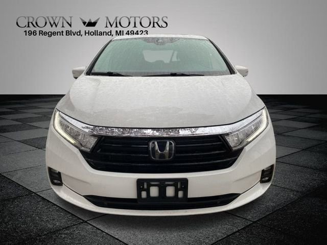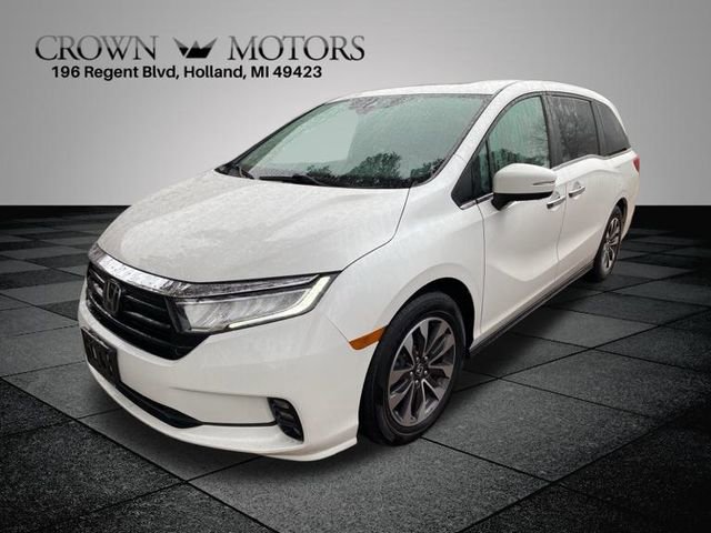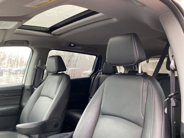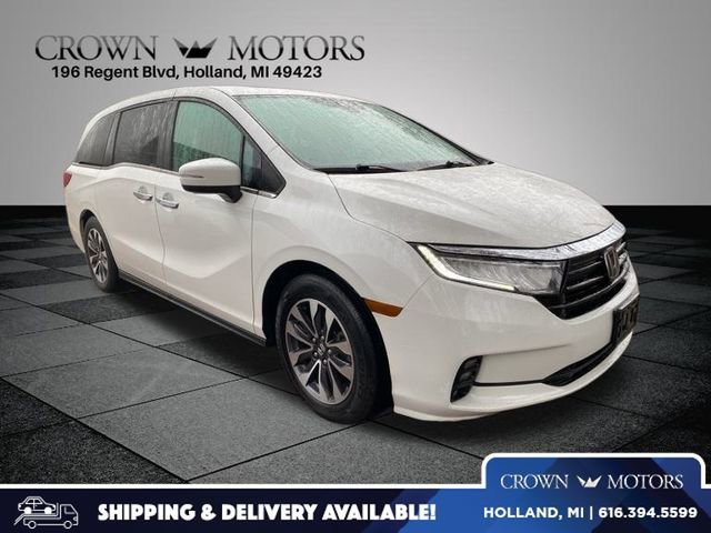 Clean CARFAX. Diamond Black 2022 Honda Odyssey EX-L FWD 10-Speed Automatic 3.5L V6 SOHC i-VTEC 24V 18" Machine-Finished Alloy Wheels, 3.61 Axle Ratio, 3rd row seats: split-bench, 4-Wheel Disc Brakes, 7 Speakers, A/V remote: CabinControl, ABS brakes, Adaptive Cruise Control: Adaptive Cruise Control (ACC) with Low-Speed Follow, Air Conditioning, Alloy wheels, AM/FM radio: SiriusXM, Anti-whiplash front head restraints, Apple CarPlay/Android Auto, Auto High-beam Headlights, Auto-dimming Rear-View mirror, Automatic temperature control, Blind Spot Information (BSI) System warning, Brake assist, Bumpers: body-color, Delay-off headlights, Driver door bin, Driver vanity mirror, Driver's Seat Mounted Armrest, Dual front impact airbags, Dual front side impact airbags, Electronic Stability Control, Exterior Parking Camera Rear, Forward collision: Collision Mitigation Braking System (CMBS) + FCW mitigation, Four wheel independent suspension, Front anti-roll bar, Front Bucket Seats, Front dual zone A/C, Front fog lights, Front reading lights, Fully automatic headlights, Garage door transmitter: HomeLink, Heated door mirrors, Heated Front Bucket Seats, Heated front seats, Illuminated entry, Knee airbag, Lane departure: Lane Keeping Assist System (LKAS) active, Leather Seat Trim, Leather steering wheel, Low tire pressure warning, Memory seat, Occupant sensing airbag, Outside temperature display, Overhead airbag, Overhead console, Panic alarm, Passenger door bin, Passenger seat mounted armrest, Passenger vanity mirror, Power door mirrors, Power driver seat, Power Liftgate, Power moonroof, Power passenger seat, Power steering, Power windows, Radio data system, Radio: 160-Watt AM/FM/HD/SiriusXM Audio System, Rear air conditioning, Rear anti-roll bar, Rear reading lights, Rear seat center armrest, Rear window defroster, Rear window wiper, Reclining 3rd row seat, Remote keyless entry, Security system, Speed control, Speed-sensing steering, Speed-Sensitive Wipers, Split folding rear seat, Spoiler, Steering wheel mounted audio controls, Tachometer, Telescoping steering wheel, Tilt steering wheel, Traction control, Trip computer, Turn signal indicator mirrors, Variably intermittent wipers.