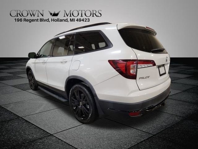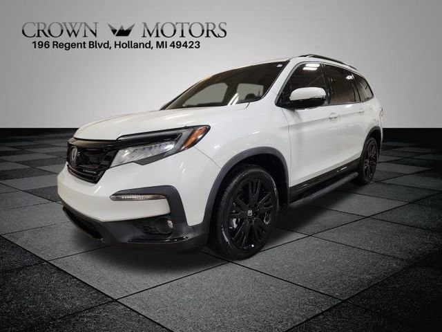 CARFAX One-Owner. Clean CARFAX. Platinum White Pearl 2022 Honda Pilot Black Edition AWD 9-Speed Automatic 3.5L V6 24V SOHC i-VTEC **ONE OWNER**, **ACCIDENT FREE**, AWD, 10 Speakers, 3rd row seats: split-bench, 4-Wheel Disc Brakes, 4.33 Axle Ratio, A/V remote: CabinControl, ABS brakes, Air Conditioning, Alloy wheels, AM/FM radio: SiriusXM, Apple CarPlay/Android Auto, Auto High-beam Headlights, Auto-dimming door mirrors, Auto-dimming Rear-View mirror, Automatic temperature control, Blind Spot Information (BSI) System warning, Brake assist, Bumpers: body-color, Compass, Delay-off headlights, Driver door bin, Driver vanity mirror, Dual front impact airbags, Dual front side impact airbags, Electronic Stability Control, Emergency communication system: HondaLink, Exterior Parking Camera Rear, Forward collision: Collision Mitigation Braking System (CMBS) + FCW mitigation, Four wheel independent suspension, Front anti-roll bar, Front Bucket Seats, Front Center Armrest, Front dual zone A/C, Front fog lights, Front reading lights, Fully automatic headlights, Garage door transmitter: HomeLink, Headphones, Heated & Ventilated Front Bucket Seats, Heated door mirrors, Heated front seats, Heated rear seats, Heated steering wheel, Illuminated entry, Lane departure: Lane Keeping Assist System (LKAS) active, Low tire pressure warning, Memory seat, Navigation system: Honda Satellite-Linked Navigation System, Occupant sensing airbag, Outside temperature display, Overhead airbag, Overhead console, Panic alarm, Passenger door bin, Passenger vanity mirror, Perforated Leather Seat Trim, Power door mirrors, Power driver seat, Power Liftgate, Power moonroof, Power passenger seat, Power steering, Power windows, Radio data system, Radio: 590-Watt Premium Audio System, Rain sensing wipers, Rear air conditioning, Rear anti-roll bar, Rear audio controls, Rear reading lights, Rear window defroster, Rear window wiper, Reclining 3rd row seat, Remote keyless entry, Roof rack: rails only, Security system, Speed control, Speed-sensing steering, Speed-Sensitive Wipers, Split folding rear seat, Spoiler, Steering wheel mounted audio controls, Tachometer, Telescoping steering wheel, Tilt steering wheel, Traction control, Trip computer, Turn signal indicator mirrors, Variably intermittent wipers, Ventilated front seats, Wheels: 20" Exclusive Gloss Black Alloy, AWD.