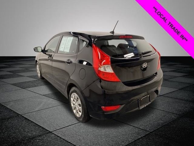 CARFAX One-Owner. Ultra Black 2015 Hyundai Accent GS FWD 6-Speed Automatic with Overdrive 1.6L I4 DGI DOHC 16V **ONE OWNER**, ** LOW MILES**, **LOCAL TRADE IN**, Black Cloth, 6 Speakers, ABS brakes, Air Conditioning, AM/FM radio: SiriusXM, Anti-whiplash front head restraints, Brake assist, Bumpers: body-color, CD player, Cloth Seat Trim, Driver door bin, Driver vanity mirror, Dual front impact airbags, Dual front side impact airbags, Electronic Stability Control, Front anti-roll bar, Front Bucket Seats, Front reading lights, Front wheel independent suspension, Heated door mirrors, Illuminated entry, Low tire pressure warning, Occupant sensing airbag, Outside temperature display, Overhead airbag, Overhead console, Panic alarm, Passenger door bin, Passenger vanity mirror, Power door mirrors, Power steering, Power windows, Radio: AM/FM/SiriusXM/CD/MP3 Audio System, Rear window defroster, Rear window wiper, Remote keyless entry, Speed control, Speed-sensing steering, Split folding rear seat, Tachometer, Tilt steering wheel, Traction control, Trip computer, Wheels: 14" x 5.0J Steel w/Cover, Black Cloth.