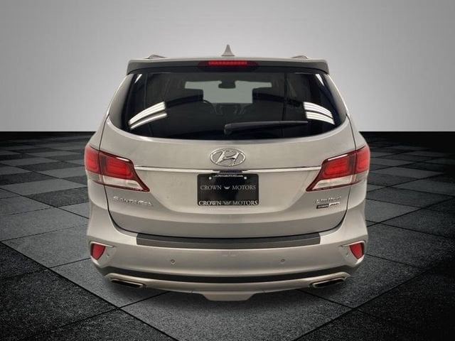Clean CARFAX. Iron Frost 2017 Hyundai Santa Fe Limited Ultimate AWD 6-Speed Automatic with Shiftronic 3.3L V6 DGI DOHC 24V **ACCIDENT FREE**, **LOCAL TRADE IN**, AWD, Gray Leather, 12 Speakers, 19" x 7.5J Aluminum Alloy Wheels, 3.041 Axle Ratio, 3rd row seats: split-bench, 4-Wheel Disc Brakes, ABS brakes, Air Conditioning, All Weather Floor Mats, Alloy wheels, AM/FM radio: SiriusXM, Android Auto, Auto-dimming Rear-View mirror, Automatic Emergency Braking, Automatic temperature control, Brake assist, Bumper Applique, Bumpers: body-color, Cargo Cover, Cargo Net, Cargo Tray, CD player, Compass, Delay-off headlights, Driver door bin, Driver vanity mirror, Dual front impact airbags, Dual front side impact airbags, Dynamic Bending Light, Electronic Parking Brake, Electronic Stability Control, Emergency communication system: Blue Link, Exterior Parking Camera Rear, First Aid Kit, Four wheel independent suspension, Front anti-roll bar, Front Bucket Seats, Front Center Armrest, Front dual zone A/C, Front fog lights, Front reading lights, Fully automatic headlights, Garage door transmitter: HomeLink, Heated & Ventilated Multi-Adjustable Bucket Seats, Heated door mirrors, Heated front seats, Heated rear seats, Heated steering wheel, High Beam Assist, High-Intensity Discharge Headlamps, Illuminated entry, Knee airbag, Lane Departure Warning System, Leather Seating Surfaces, Leather steering wheel, Limited Ultimate Tech Package 04, Low tire pressure warning, Memory seat, Navigation System, Occupant sensing airbag, Option Group 04, Outside temperature display, Overhead airbag, Overhead console, Panic alarm, Passenger door bin, Passenger vanity mirror, Power door mirrors, Power driver seat, Power Liftgate, Power moonroof, Power passenger seat, Power steering, Power windows, Radio: AM/FM/SiriusXM/CD/HD/MP3 w/Navigation, Rear air conditioning, Rear anti-roll bar, Rear Parking Sensors, Rear window defroster, Rear window wiper, Remote keyless entry, Roof rack: rails only, Security system, Smart Cruise Control, Speed control, Speed-sensing steering, Split folding rear seat, Spoiler, Steering wheel mounted audio controls, Tachometer, Telescoping steering wheel, Tilt steering wheel, Traction control, Trip computer, Turn signal indicator mirrors, Variably intermittent wipers, Ventilated front seats, Wheel Locks, AWD, Gray Leather.