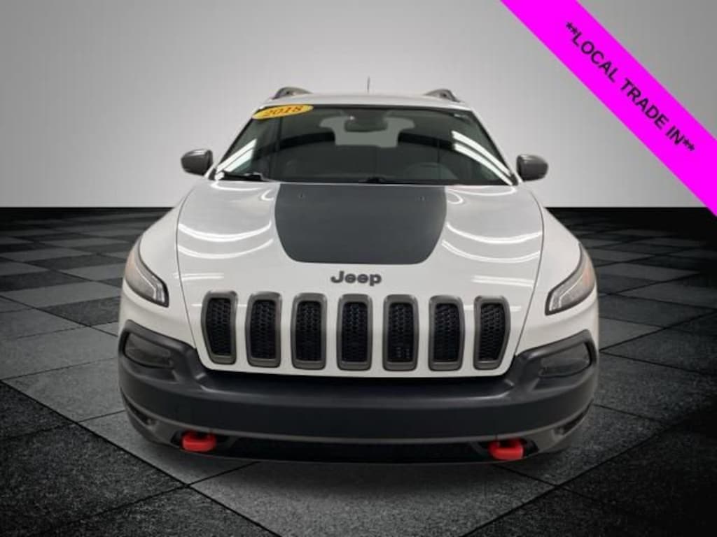 Bright White Clearcoat 2018 Jeep Cherokee Trailhawk 4WD 9-Speed Automatic 3.2L V6 **LOCAL TRADE IN**, 4WD, 1 Year Trial (Registration Required), 17" x 7.5" Aluminum Wheels, 4-Wheel Disc Brakes, 5-Year SiriusXM Traffic Service, 5-Year SiriusXM Travel Link Service, 6 Speakers, 600 Amp Maintenance Free Battery, 7 & 4 Pin Wiring Harness, 8.4" Touchscreen Display, ABS brakes, Air Conditioning, Alloy wheels, AM/FM radio: SiriusXM, Anti-whiplash front head restraints, Automatic temperature control, Auxiliary Transmission Oil Cooler, Brake assist, Class III Receiver Hitch, Cloth/Leather/Vinyl Bucket Seats, Cold Weather Group, Compass, Delay-off headlights, Driver door bin, Driver vanity mirror, Dual front impact airbags, Dual front side impact airbags, Electronic Stability Control, Emergency communication system: Uconnect Access, Engine Block Heater, Engine Oil Cooler, Exterior Mirrors Courtesy Lamps, Exterior Mirrors w/Supplemental Signals, Four wheel independent suspension, Front anti-roll bar, Front Bucket Seats, Front Center Armrest, Front dual zone A/C, Front fog lights, Front reading lights, Fully automatic headlights, GPS Antenna Input, GPS Navigation, HD Radio, Heated door mirrors, Heated Front Seats, Heated Steering Wheel, High intensity discharge headlights: Bi-Xenon, Illuminated entry, Integrated Voice Command w/Bluetooth, Jeep Rack Off Road Accessory Kit, Knee airbag, Leather Shift Knob, Low tire pressure warning, Manufacturer's Statement of Origin, Occupant sensing airbag, Off Road Suspension, Outside temperature display, Overhead airbag, Overhead console, Panic alarm, ParkView Rear Back-Up Camera, Passenger door bin, Passenger vanity mirror, Power door mirrors, Power driver seat, Power steering, Power windows, Quick Order Package 27E, Radio data system, Radio: Uconnect 3C Nav w/8.4" Display, Radio: Uconnect 3C w/8.4" Display, Rear anti-roll bar, Rear reading lights, Rear seat center armrest, Rear side impact airbag, Rear window defroster, Rear window wiper, Remote keyless entry, Remote Start System, Roof rack: rails only, SiriusXM Satellite Radio, SiriusXM Traffic, SiriusXM Travel Link, Speed control, Speed-sensing steering, Split folding rear seat, Spoiler, Steering wheel mounted audio controls, Tachometer, Telescoping steering wheel, Tilt steering wheel, Traction control, Trailer Tow Group, Trailer Tow Wiring Harness, Trip computer, Turn signal indicator mirrors, Uconnect Access, Variably intermittent wipers, Voltmeter, Wheels: 17" x 7.5" Black Painted Aluminum, Windshield Wiper De-Icer, 4WD.