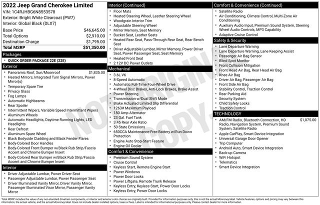 Picture yourself behind the wheel of this 2022 Jeep Grand Cherokee Limited â" and then come make it a reality. With 21,820 miles, this pre-owned Jeep has been well-maintained and is ready to deliver everything you're looking for in a vehicle. Whether you're after dependable daily driving, weekend adventures, or the perfect family hauler, this Grand Cherokee Limited delivers â" and it's available for you today.