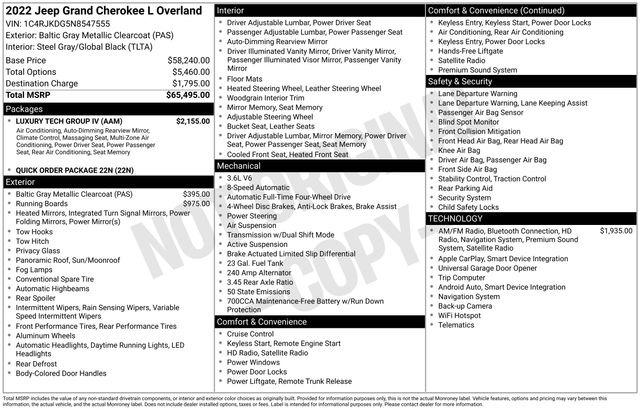 Elevate your driving experience with this stunning 2022 Jeep Grand Cherokee L Overland. Boasting a captivating Gray exterior, this SUV is not only visually striking but also packed with an impressive array of features that will elevate your daily commute and weekend adventures.