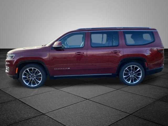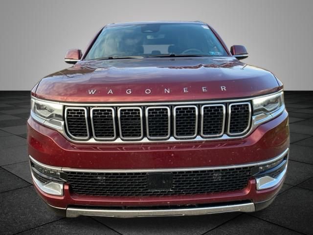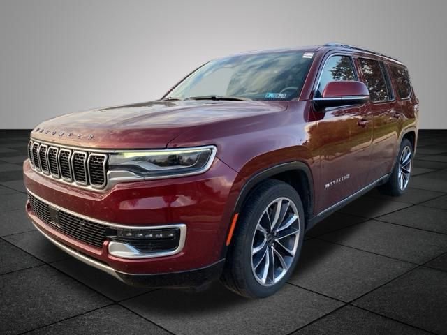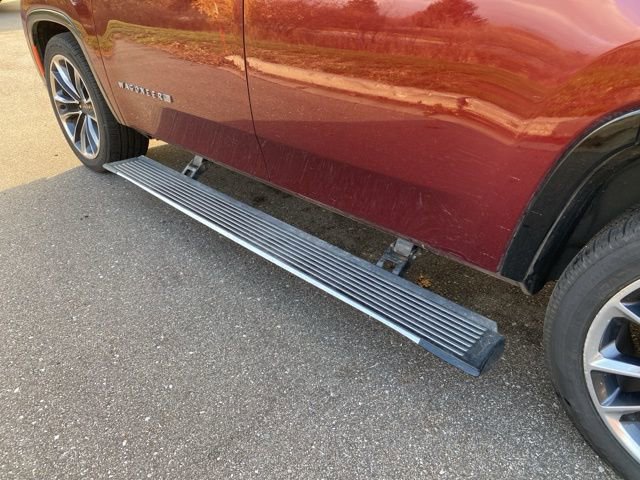 Velvet Red Pearlcoat 2022 Jeep Wagoneer Series III 4WD 8-Speed Automatic 5.7L V8 10 Speakers, 19 Speaker McIntosh Audio System, 3 Panel Sunroof, 3.21 Rear Axle Ratio, 3rd row seats: bench, 4-Wheel Disc Brakes, ABS brakes, Adjustable pedals, Adjustable Roof Rail Crossbars, Air Conditioning, Alloy wheels, AM/FM radio: SiriusXM with 360L, Anti-whiplash front head restraints, Audio memory, Auto High-beam Headlights, Auto-dimming door mirrors, Auto-dimming Rear-View mirror, Auto-leveling suspension, Automatic temperature control, Brake assist, Bumpers: body-color, Cargo Cover, Compass, Delay-off headlights, Driver door bin, Driver vanity mirror, Driver's Seat Mounted Armrest, Dual front impact airbags, Dual front side impact airbags, Electronic Stability Control, Exterior Parking Camera Rear, Four wheel independent suspension, Front anti-roll bar, Front Bucket Seats, Front Center Armrest w/Storage, Front dual zone A/C, Front fog lights, Front Passenger Interactive Display, Front reading lights, Fully automatic headlights, Garage door transmitter, Genuine wood console insert, Genuine wood dashboard insert, Genuine wood door panel insert, Heads-Up Display, Heated door mirrors, Heated front seats, Heated rear seats, Heated steering wheel, Illuminated entry, Knee airbag, Leather Trimmed Bucket Seats, Low tire pressure warning, Luxury Front & Rear Floor Mats, Memory seat, Navigation System, Normal Duty Suspension, Occupant sensing airbag, Outside temperature display, Overhead airbag, Overhead console, Panic alarm, Passenger door bin, Passenger seat mounted armrest, Passenger vanity mirror, Pedal memory, Power adjustable front head restraints, Power Deployable Running Boards, Power door mirrors, Power driver seat, Power Liftgate, Power passenger seat, Power steering, Power windows, Premium Group I (DISC), Quick Order Package 22N, Radio data system, Radio: Uconnect 5 Nav w/10.1" Display, Rain sensing wipers, Rear air conditioning, Rear anti-roll bar, Rear dual zone A/C, Rear reading lights, Rear seat center armrest, Rear window defroster, Rear window wiper, Reclining 3rd row seat, Remote keyless entry, Reversible Carpet/Vinyl Cargo Mat, Security system, Speed control, Speed-sensing steering, Speed-Sensitive Wipers, Split folding rear seat, Steering wheel memory, Steering wheel mounted audio controls, Tachometer, Telescoping steering wheel, Tilt steering wheel, Traction control, Trip computer, Turn signal indicator mirrors, Variably intermittent wipers, Ventilated front seats, Voltmeter, Wheels: 20" x 9.0" Premium 2 Aluminum, Wheels: 22" x 9.0" Premium 3 Aluminum (DISC).