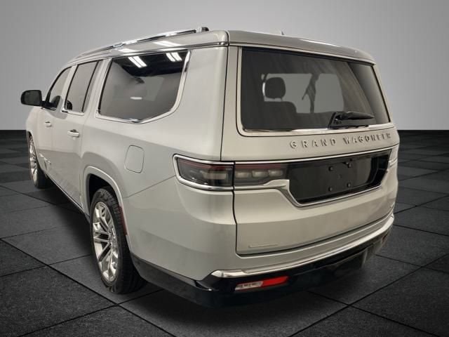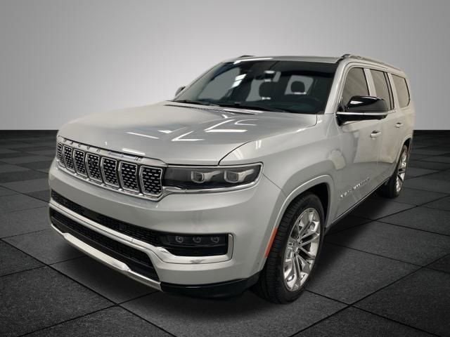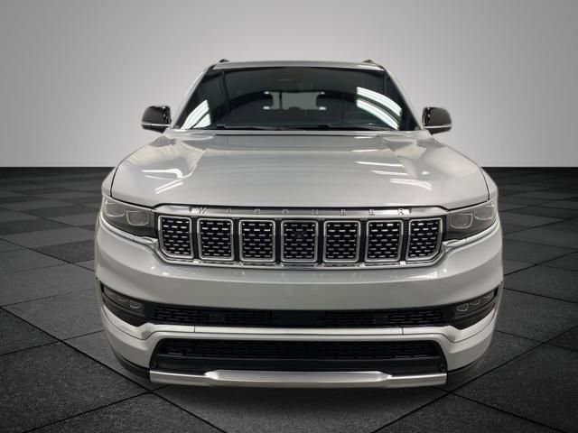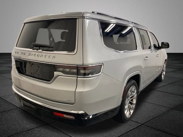 CARFAX One-Owner. Silver Zynith 2023 Jeep Grand Wagoneer L Series II 4WD 8-Speed Automatic 3.0L I6 **WONT LAST LONG**, 19 Speakers, Body Color Roof, Navigation System, Quick Order Package 28S, Two Tone Paint Group, 3.92 Rear Axle Ratio, 3rd row seats: bench, 4-Wheel Disc Brakes, ABS brakes, Adjustable pedals, Air Conditioning, Alloy wheels, AM/FM radio: SiriusXM with 360L, Anti-whiplash front head restraints, Audio memory, Auto High-beam Headlights, Auto-dimming door mirrors, Auto-dimming Rear-View mirror, Auto-leveling suspension, Automatic temperature control, Brake assist, Bumpers: body-color, Compass, Delay-off headlights, Driver door bin, Driver vanity mirror, Driver's Seat Mounted Armrest, Dual front impact airbags, Dual front side impact airbags, Electronic Stability Control, Emergency communication system: Automatic SOS Call, Four wheel independent suspension, Front anti-roll bar, Front Bucket Seats, Front Center Armrest w/Storage, Front dual zone A/C, Front fog lights, Front Passenger Interactive Display, Front reading lights, Fully automatic headlights, Garage door transmitter, Genuine wood console insert, Genuine wood dashboard insert, Genuine wood door panel insert, Heads-Up Display, Heated door mirrors, Heated front seats, Heated rear seats, Heated steering wheel, Illuminated entry, Knee airbag, Leather steering wheel, Leather Trimmed Bucket Seats, Low tire pressure warning, Memory seat, Normal Duty Suspension, Occupant sensing airbag, Outside temperature display, Overhead airbag, Overhead console, Panic alarm, Passenger door bin, Passenger seat mounted armrest, Passenger vanity mirror, Pedal memory, Power adjustable front head restraints, Power door mirrors, Power driver seat, Power Liftgate, Power moonroof, Power passenger seat, Power steering, Power windows, Radio data system, Radio: Uconnect 5 Nav w/12.0" Display, Rain sensing wipers, Rear air conditioning, Rear anti-roll bar, Rear dual zone A/C, Rear reading lights, Rear seat center armrest, Rear window defroster, Rear window wiper, Reclining 3rd row seat, Remote keyless entry, Security system, Speed control, Speed-sensing steering, Speed-Sensitive Wipers, Split folding rear seat, Steering wheel memory, Steering wheel mounted audio controls, Tachometer, Telescoping steering wheel, Tilt steering wheel, Traction control, Trip computer, Turn signal indicator mirrors, Variably intermittent wipers, Ventilated front seats, Voltmeter, Wheels: 22" x 9.0" Premium 1 Aluminum, Wheels: 22" x 9.0" Premium 2 Aluminum, 19 Speakers, Body Color Roof, Navigation System, Quick Order Package 28S, Two Tone Paint Group.