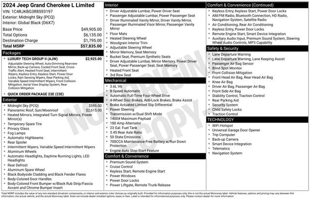Elevate your driving experience with the 2024 Jeep Grand Cherokee L Limited. This exceptional SUV combines uncompromising performance, luxurious comfort, and cutting-edge technology, making it the perfect choice for the discerning driver. Visit our showroom today and let us demonstrate how this remarkable vehicle can transform your driving experience.
