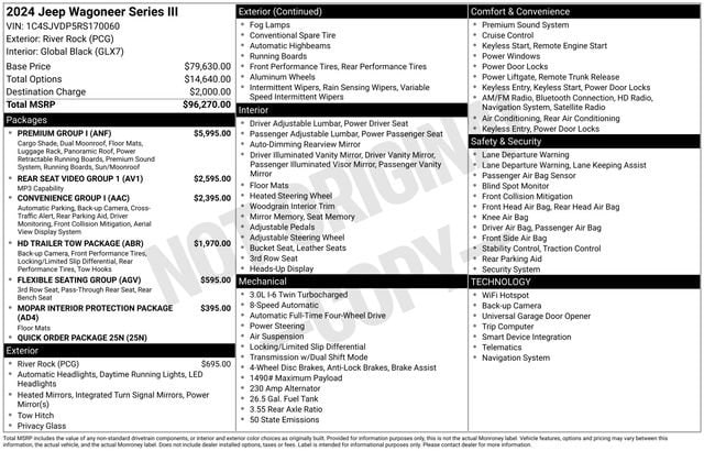 This Wagoneer is truly a masterpiece of engineering and design. With its exceptional capabilities, luxurious amenities, and advanced technology, it's the ultimate choice for those seeking a premium, versatile, and capable SUV. Experience the difference for yourself â" schedule a test drive today and discover the unparalleled Jeep Wagoneer Series III.