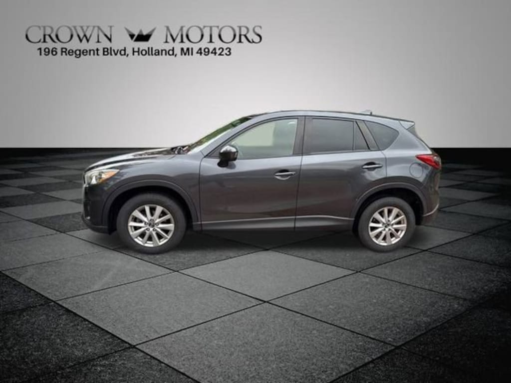 Meteor Gray Mica 2015 Mazda CX-5 Touring AWD 6-Speed Automatic SKYACTIV® 2.5L 4-Cylinder DOHC 16V **LOCAL TRADE IN**, 17 x 7J Aluminum Alloy Wheels, 4-Wheel Disc Brakes, 4.62 Axle Ratio, 6 Speakers, ABS brakes, Air Conditioning, Alloy wheels, AM/FM radio, Brake assist, Bumpers: body-color, CD player, Cloth Seat Trim, Delay-off headlights, Driver door bin, Driver vanity mirror, Dual front impact airbags, Dual front side impact airbags, Electronic Stability Control, Exterior Parking Camera Rear, Four wheel independent suspension, Front anti-roll bar, Front Bucket Seats, Front Center Armrest, Front fog lights, Front reading lights, Illuminated entry, Leather Shift Knob, Low tire pressure warning, Occupant sensing airbag, Outside temperature display, Overhead airbag, Overhead console, Panic alarm, Passenger door bin, Passenger vanity mirror, Power door mirrors, Power driver seat, Power steering, Power windows, Radio data system, Radio: AM/FM/CD/HD Modular Audio System w/6 Spkrs, Rear anti-roll bar, Rear reading lights, Rear seat center armrest, Rear window defroster, Rear window wiper, Remote keyless entry, Speed control, Speed-sensing steering, Split folding rear seat, Spoiler, Sport Shape Front Seats, Steering wheel mounted audio controls, Tachometer, Telescoping steering wheel, Tilt steering wheel, Traction control, Trip computer, Turn signal indicator mirrors, Variably intermittent wipers.