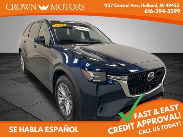 CLOSEOUT PRICING!!! VEHICLE IN INVENTORY UNTIL 12/31/25!!! CARFAX One-Owner. Deep Crystal Blue Mica 2024 Mazda CX-90 3.3 Turbo Preferred AWD 8-Speed Automatic I6 Turbo 3.692 Axle Ratio, 3rd row seats: bench, 4-Wheel Disc Brakes, 8 Speakers, ABS brakes, Air Conditioning, Alloy wheels, AM/FM radio, AppLink/Apple CarPlay and Android Auto, Auto High-beam Headlights, Automatic temperature control, Brake assist, Bumpers: body-color, Cargo Net, Compass, Crossbars in Silver, Delay-off headlights, Driver door bin, Driver vanity mirror, Dual front impact airbags, Dual front side impact airbags, E911 Automatic Emergency Notification, Electronic Stability Control, Emergency communication system: MAZDA CONNECT, Exterior Parking Camera Rear, Four wheel independent suspension, Front anti-roll bar, Front Bucket Seats, Front Center Armrest w/Storage, Front dual zone A/C, Front reading lights, Fully automatic headlights, Heated door mirrors, Heated Front Bucket Seats, Heated front seats, Illuminated entry, Infotainment System Voice Command, Knee airbag, Leather Seat Trim, Leather Shift Knob, Leather steering wheel, Low tire pressure warning, Mazda Connected Services, Occupant sensing airbag, Outside temperature display, Overhead airbag, Overhead console, Pandora Internet Radio Integration, Panic alarm, Passenger door bin, Passenger vanity mirror, Power door mirrors, Power driver seat, Power Liftgate, Power moonroof, Power passenger seat, Power steering, Power windows, Radio Broadcast Data System Program Information, Radio data system, Radio: AM/FM Sound System, Rain sensing wipers, Rear air conditioning, Rear anti-roll bar, Rear reading lights, Rear seat center armrest, Rear window defroster, Rear window wiper, Remote keyless entry, SMS Text Msg Audio Delivery & Reply, Speed control, Speed-sensing steering, Split folding rear seat, Spoiler, Steering wheel mounted audio controls, Tachometer, Telescoping steering wheel, Tilt steering wheel, Traction control, Trip computer, Turn signal indicator mirrors, Variably intermittent wipers, Wheels: 19" x 8.5J Aluminum Alloy, **ONE OWNER**, **ACCIDENT FREE**.